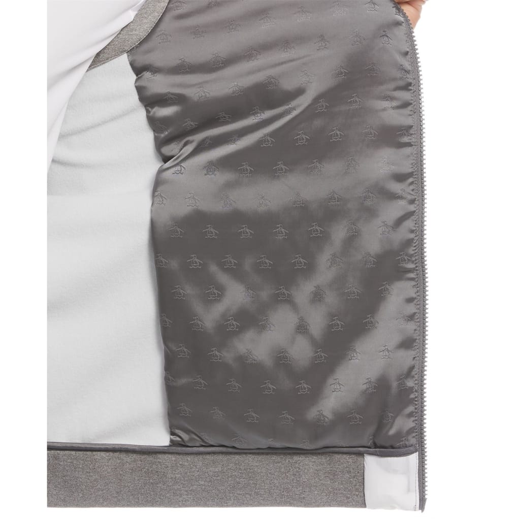 Discover the Original Penguin performance jacket, part of the activewear collection. This solid design features a mock neck and a zipper closure for practicality. Designed as a performance vest with a regular fit, it includes the iconic penguin logo and a convenient zipped pocket. Ideal for those seeking functionality and style in one piece. -