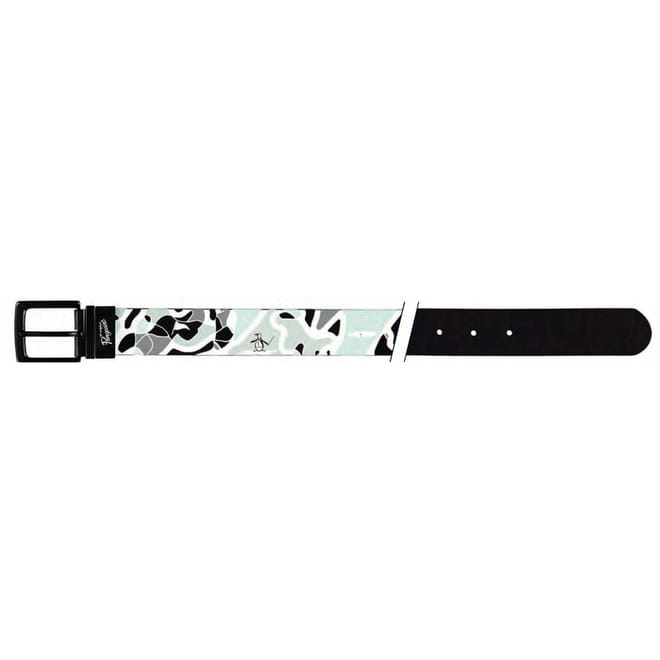 Elevate your casual wardrobe with the Original Penguin leather belt. Featuring a camo pattern and a pin buckle, this belt offers an adjustable length for a perfect fit. The iconic penguin logo embellishment adds a distinctive touch, making it a stylish choice for any occasion. -