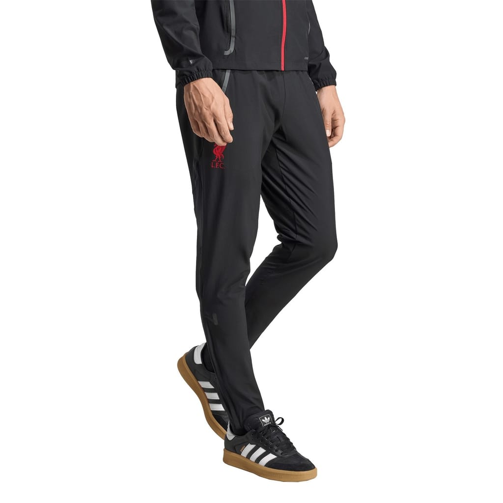 Travel in comfort and style with the adidas Liverpool Vis Tracksuit Bottoms 2025/26. Designed with moisture-managing AEROREADY to keep you dry, they feature a regular fit and a sleek look. Finished with a reflective Liverpool FC crest, so everyone knows who you support wherever the journey takes you.