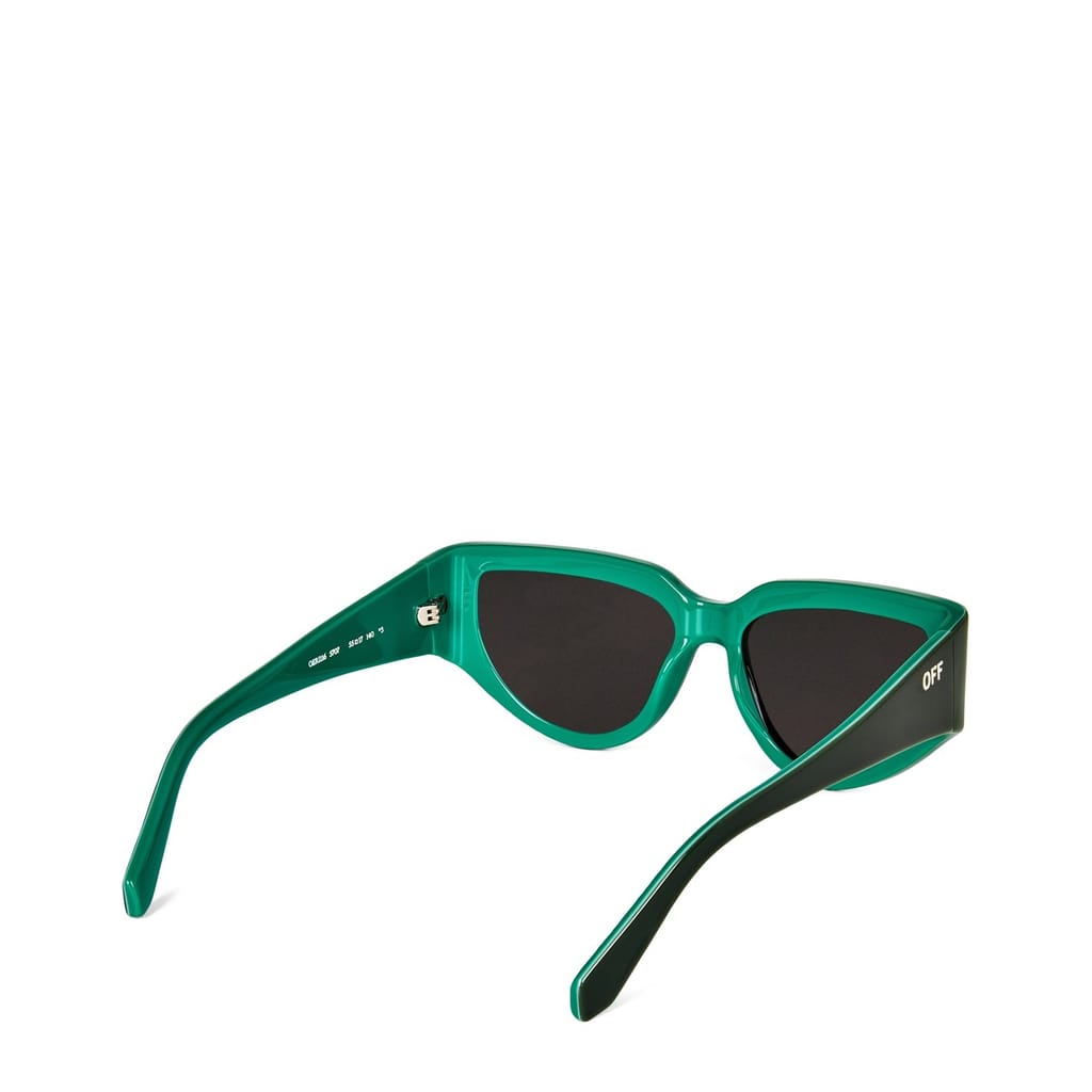 These Off-White sunglasses are a stylish addition to any eyewear collection. Crafted from durable plastic, they feature a full rim design and a striking color block pattern. The lenses offer 100% UV protection, making them suitable for all seasons. A subtle logo embellishment adds a touch of brand identity, perfect for casual wear. -