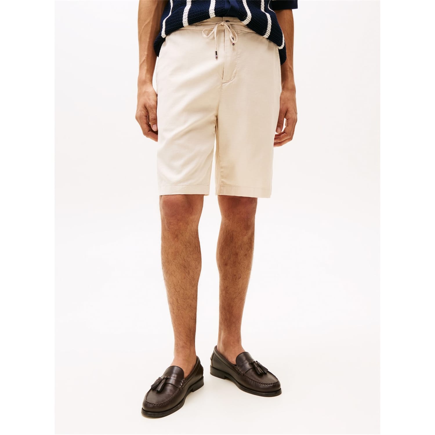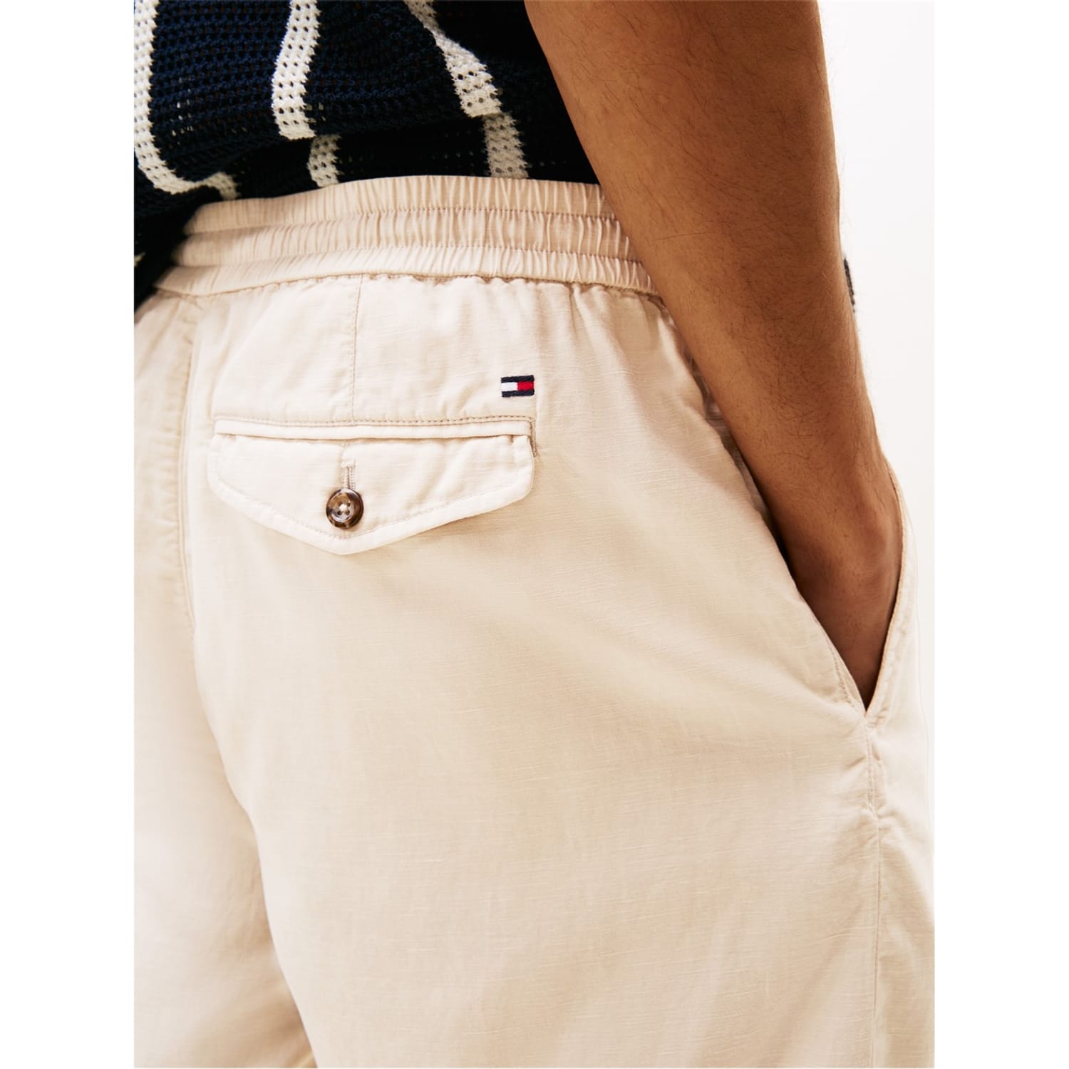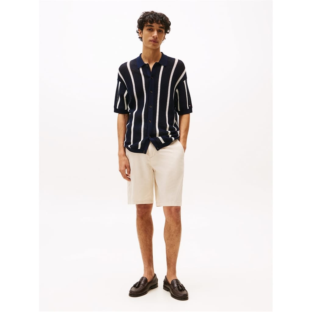 These Tommy Hilfiger bermuda shorts feature a stylish wash pattern and are crafted from woven fabric. Designed for casual collections, they come with a convenient drawstring closure. The shorts are embellished with a logo and pockets, adding a touch of practicality and brand identity to your wardrobe. -