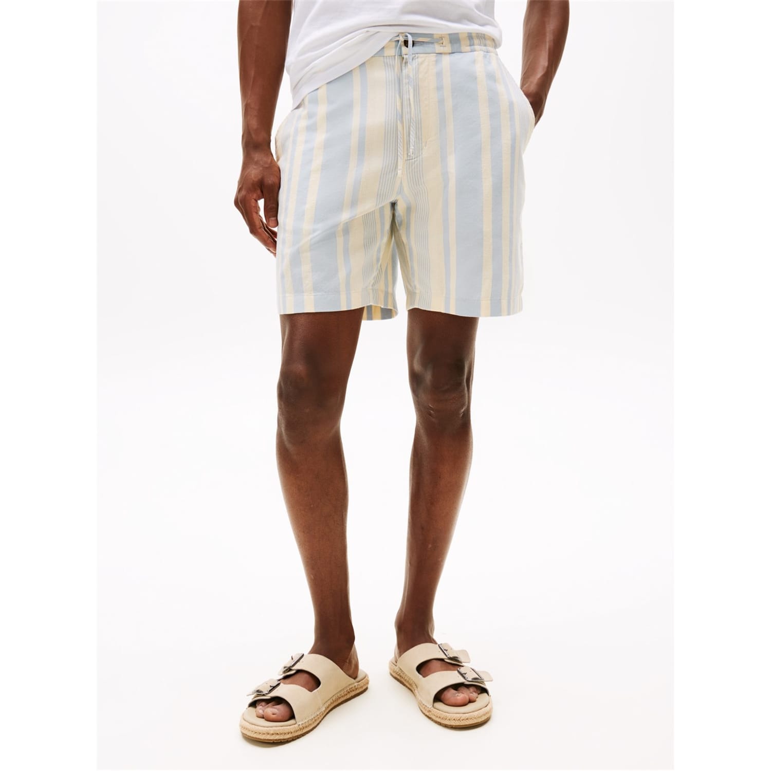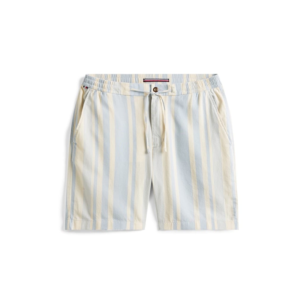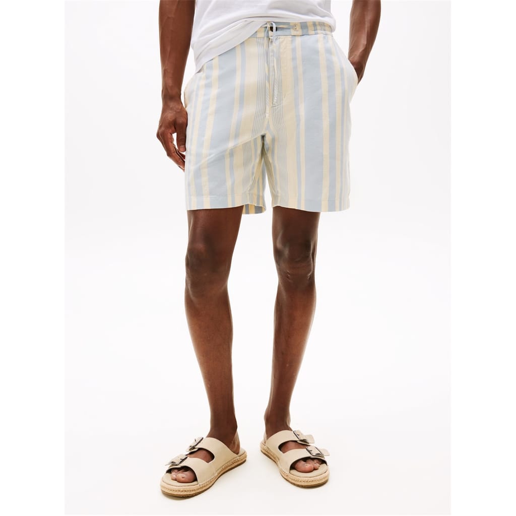These Tommy Hilfiger bermuda shorts feature a stylish stripe pattern and are crafted from woven fabric. Designed for casual wear, they include practical pockets and a back pocket for added convenience. The drawstring closure ensures a comfortable fit, making them a versatile addition to any wardrobe. -