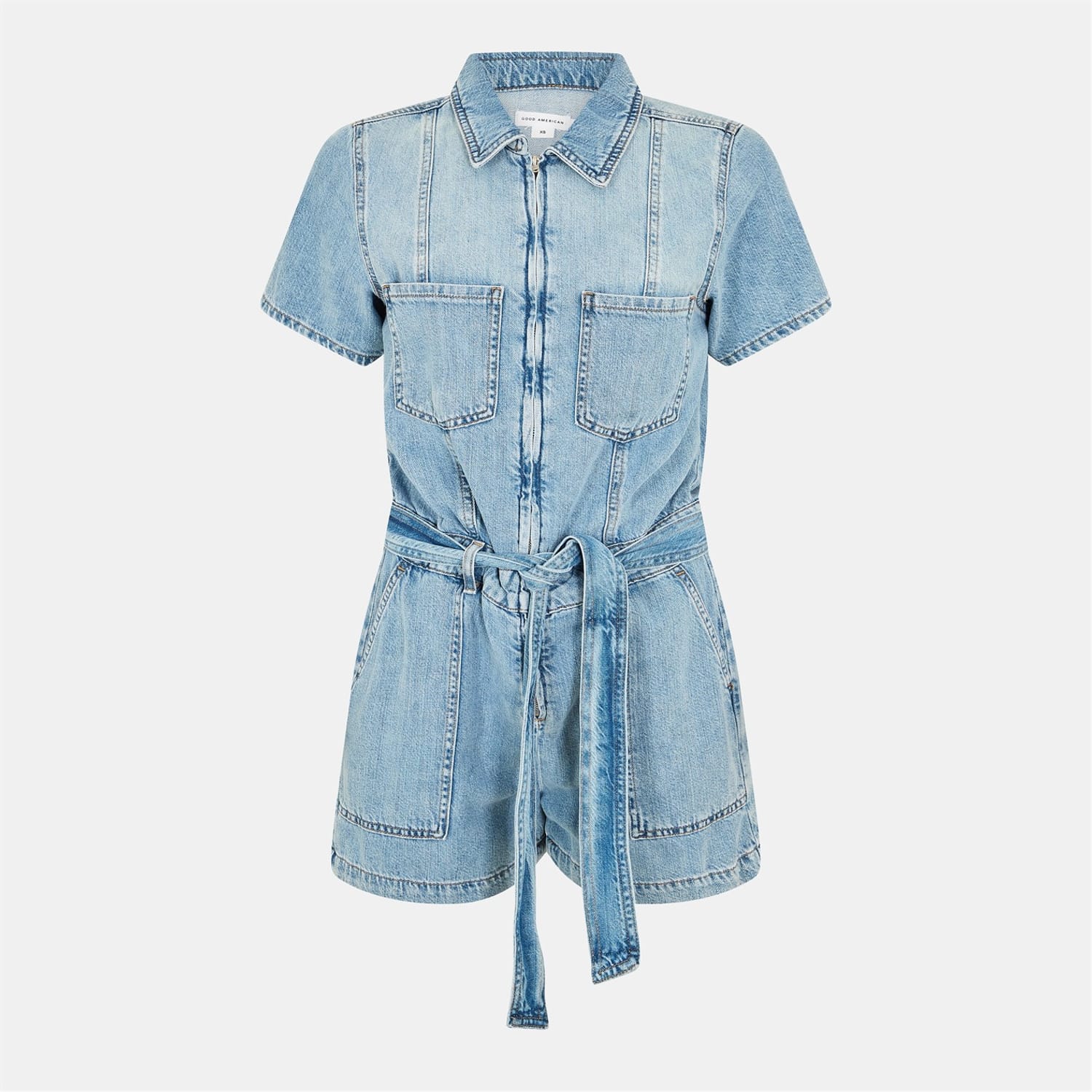 Discover the Good American playsuit, a casual piece featuring a collared neck and short shirt sleeves. This regular fit design includes a convenient zipper closure, complemented by a tie waist and button details. Embellished with practical pockets, this playsuit is perfect for effortless style. -