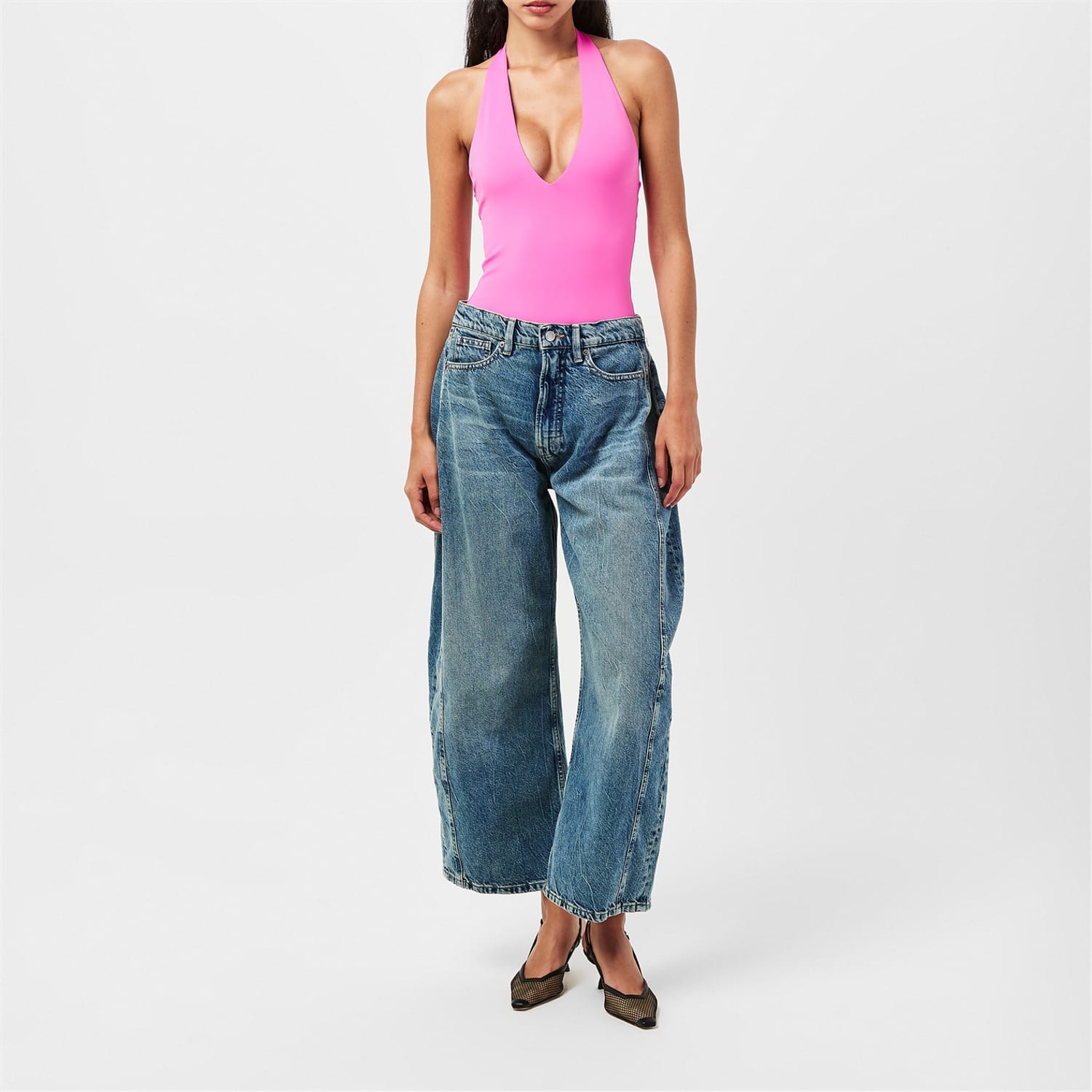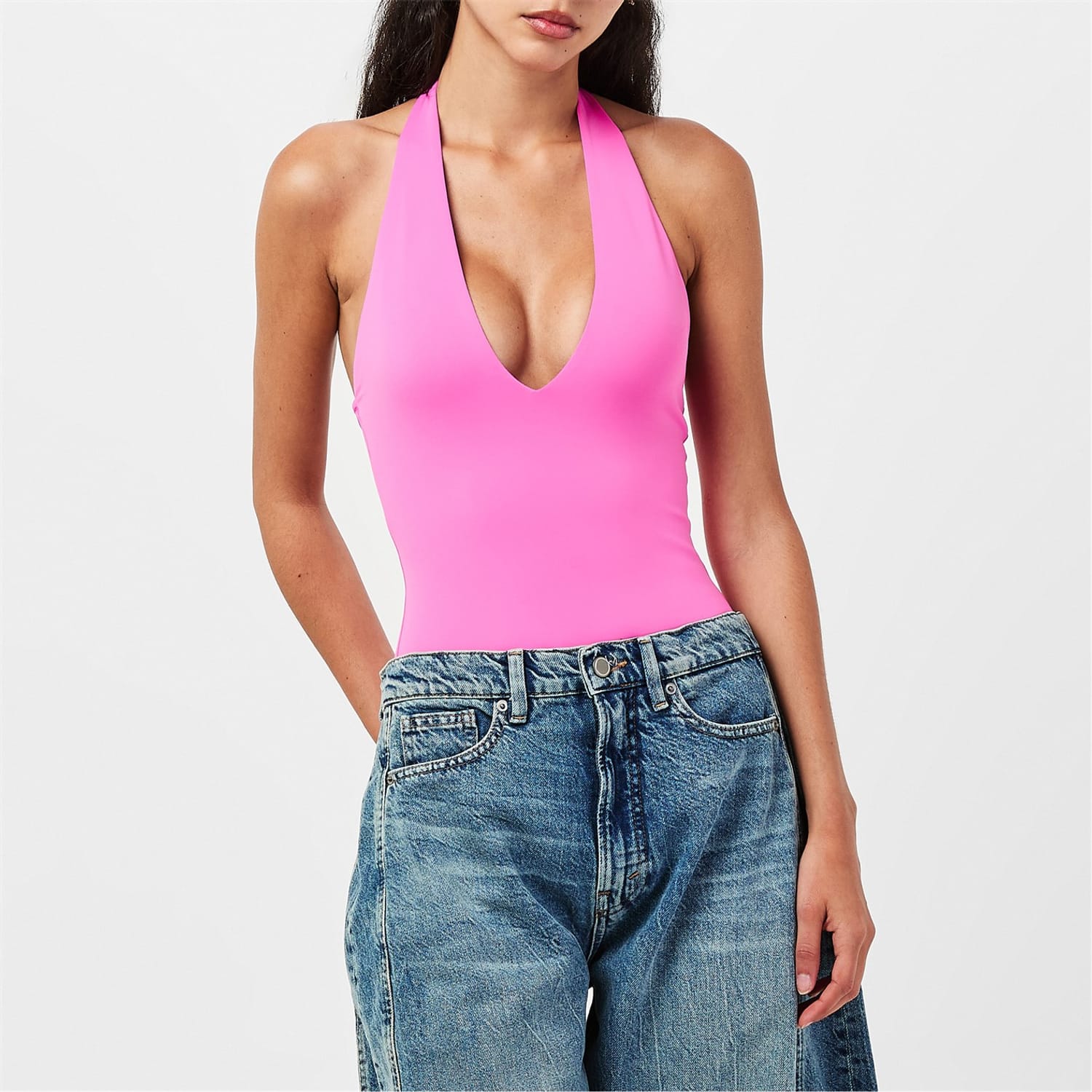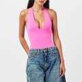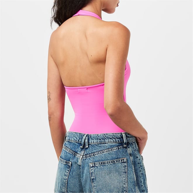 Good American's Halter Bodysuit delivers sleek lines with practical styling options. The halter neckline creates a flattering shape while the form-fitting design offers comfortable wear under any outfit.