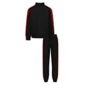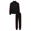 This Under Armour Set consists of one full zip track jacket and one pair of jogger bottoms. Material wicks sweat & dries really fast. 100% polyester.Contrast colored side seam on the pant and down the arms of the top. Front side seam pockets on top. The top has ribbed cuffs along with a ribbed bottom hem. -