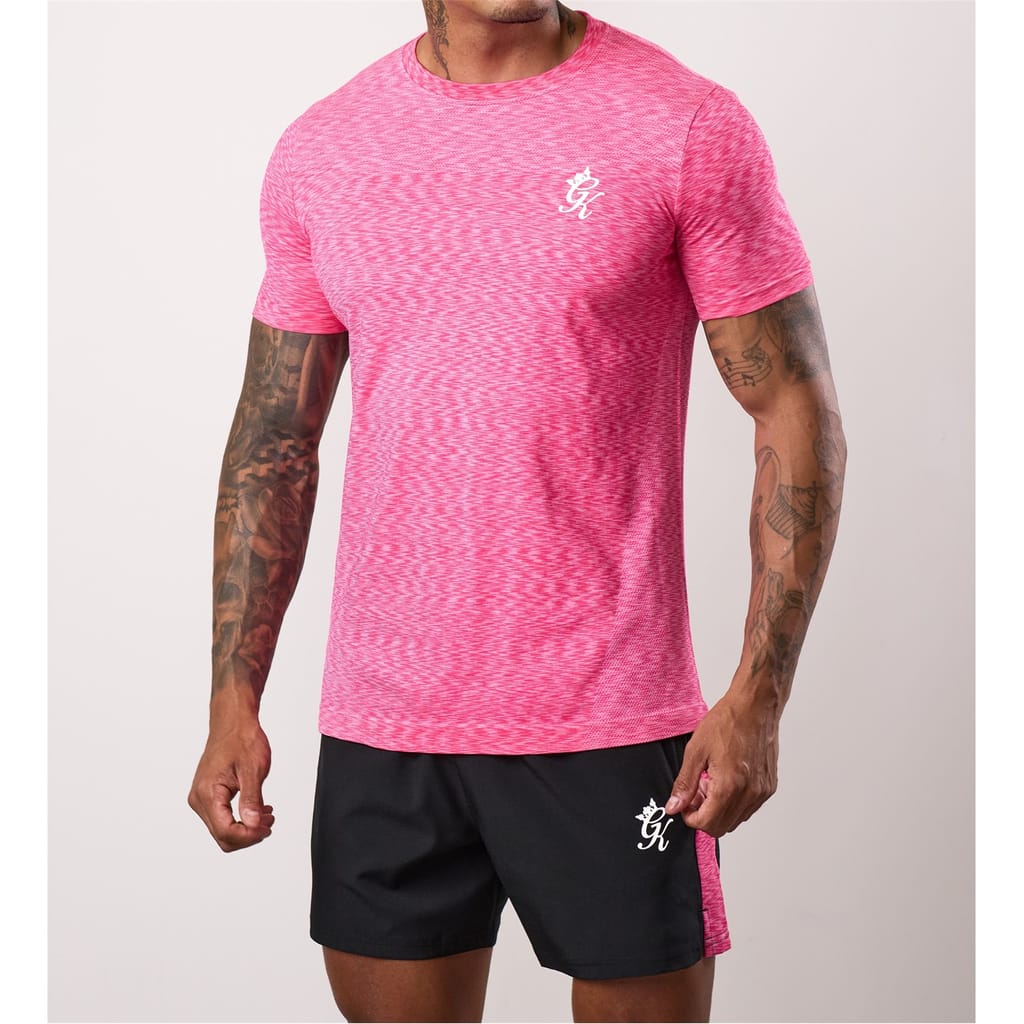 Elevate your activewear collection with this Gym King top, designed for performance. Featuring a heathered pattern and a crew neck, this short-sleeve top offers a slim fit for a sleek silhouette. The iconic logo embellishment adds a touch of brand identity, making it a versatile choice for your workout wardrobe. -