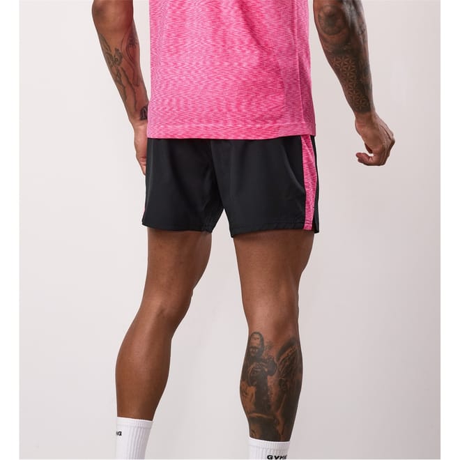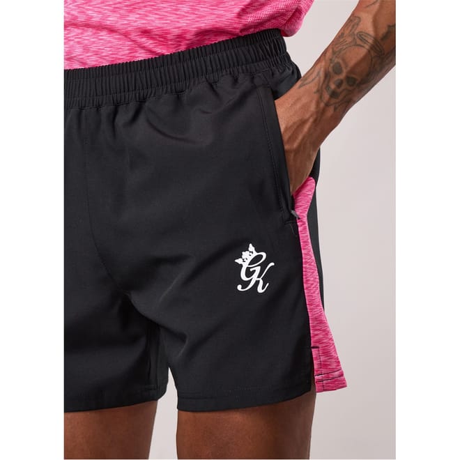 These Gym King shorts are a versatile addition to your wardrobe, perfect for both casual and activewear collections. Designed with a solid pattern, they feature an elasticated waistband for comfort and a zipper closure for added security. The shorts include practical side and zipped pockets, along with a logo embellishment, making them ideal for performance and running activities. -