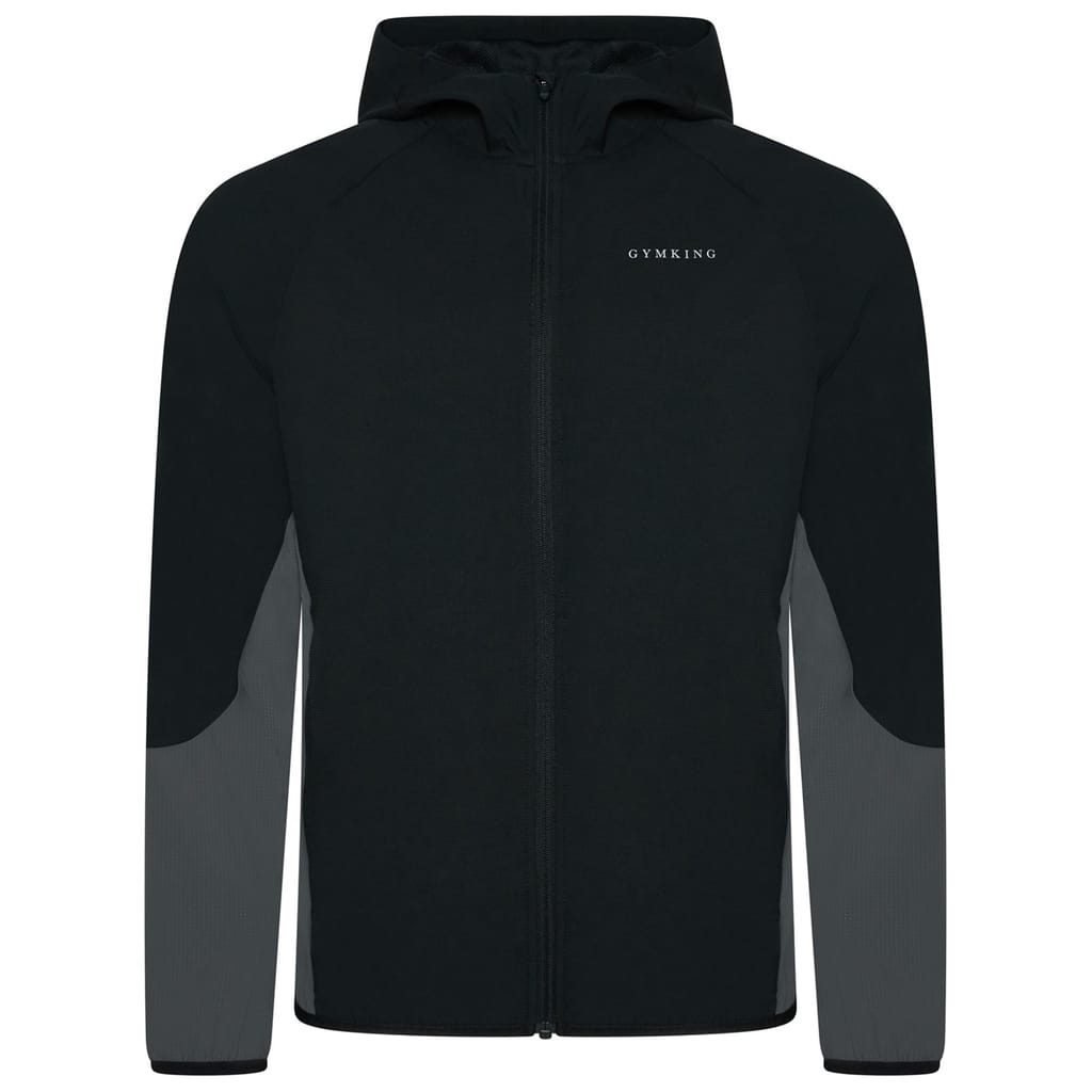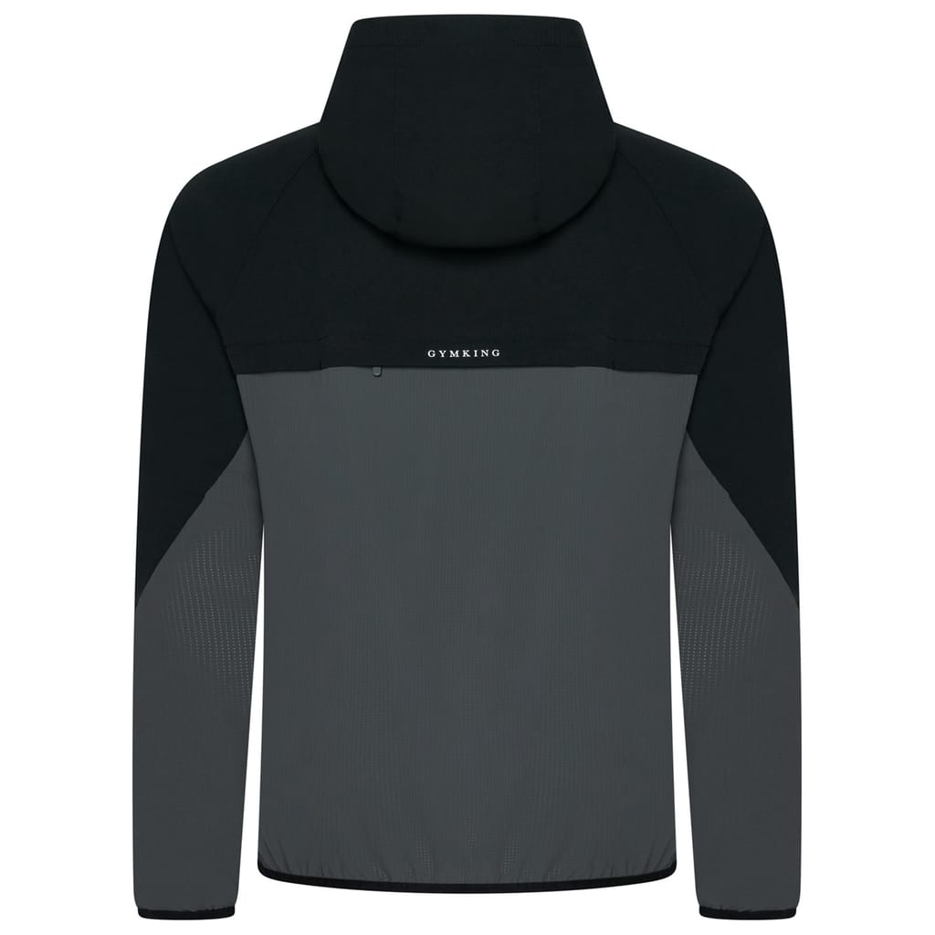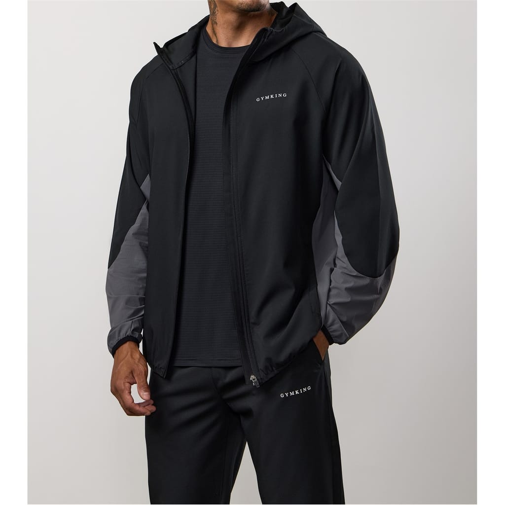 The Gym King windbreaker from the activewear collection features a hooded neck and a regular fit, perfect for those on-the-go moments. Its raglan sleeves and elasticated cuffs provide comfort and flexibility. The jacket showcases a stylish color block pattern and a zipper closure, complete with a logo embellishment for a touch of brand identity. -