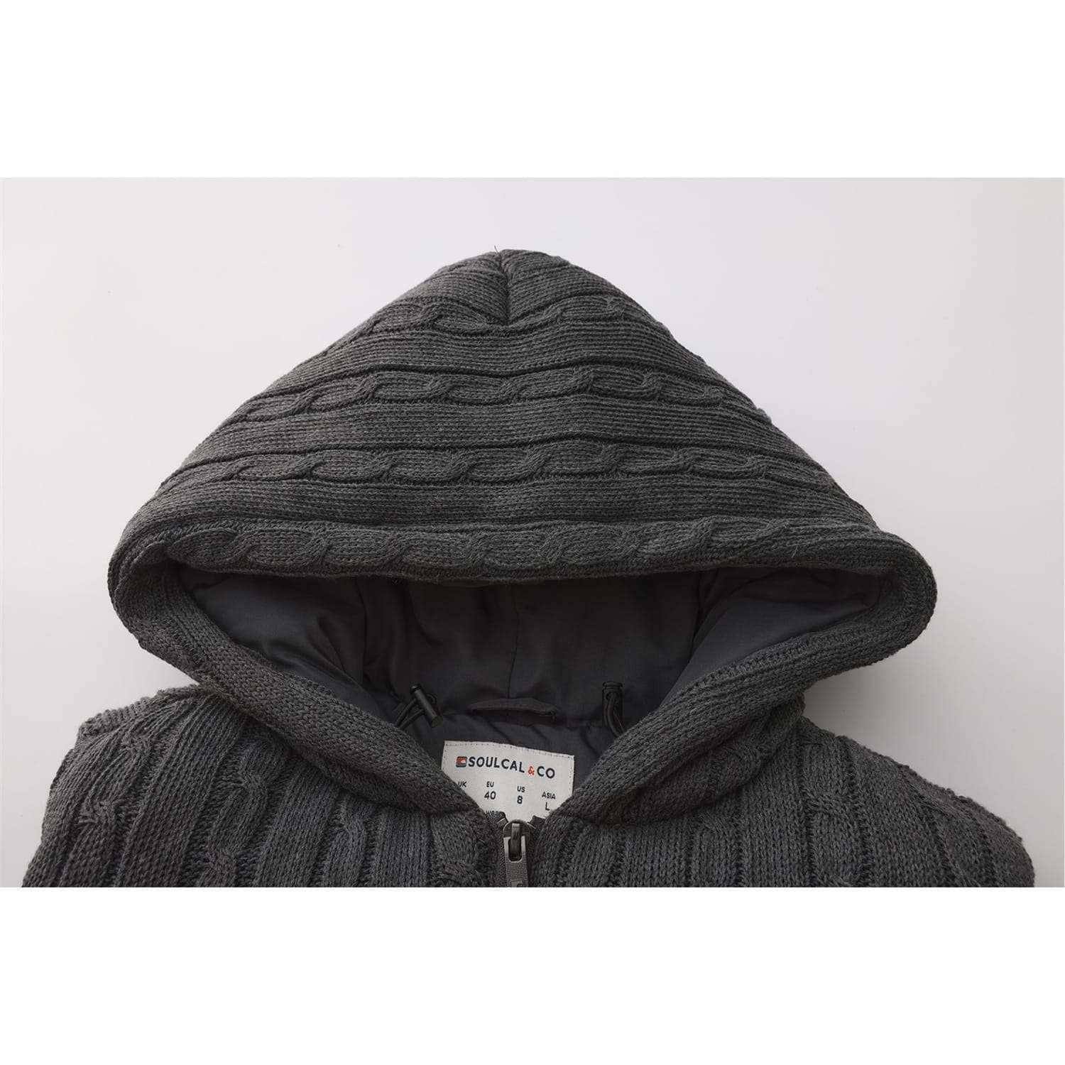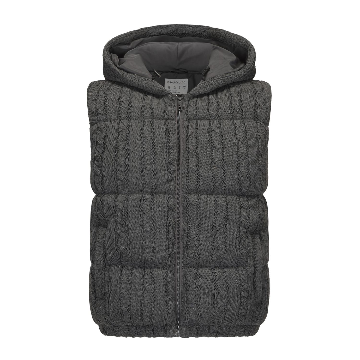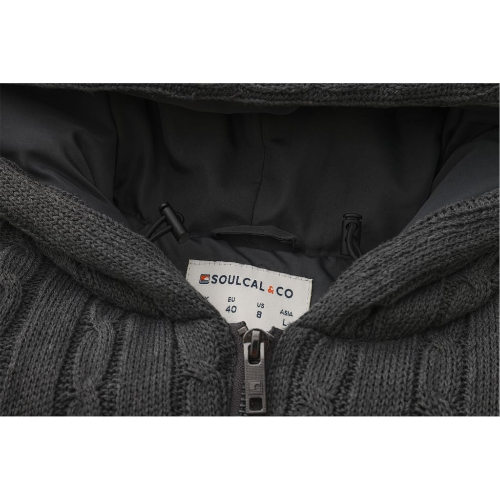 This SoulCal quilted jacket features a cable knit pattern and a convenient zipper closure. The design is enhanced with a subtle logo embellishment, adding a touch of brand identity. Ideal for those seeking a blend of style and functionality. -