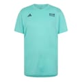 This adidas top is designed for performance, featuring a crew neck and regular fit. The solid pattern is complemented by a distinctive logo and lettering graphic, making it a stylish choice for any activity. -