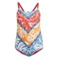 - A vibrant tropical-inspired print in primary colours ensures you'll stand out at the pool.