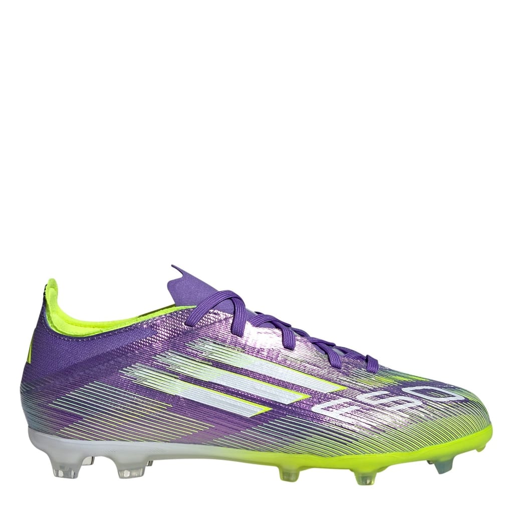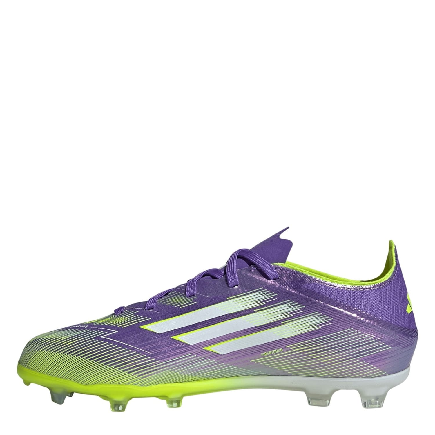 Unlock their speed and confidence with the adidas F50 Firm Ground Football Boots. Designed to help young players move fast and play bold, these boots feature a lightweight Fibertouch upper and Compression Fit Tunnel Tongue for a secure fit. The Sprintweb 3D texture supports close ball control, while the Sprintplate 360 outsole delivers powerful traction on dry grass pitches. Perfect for match days, training, and competitive play.