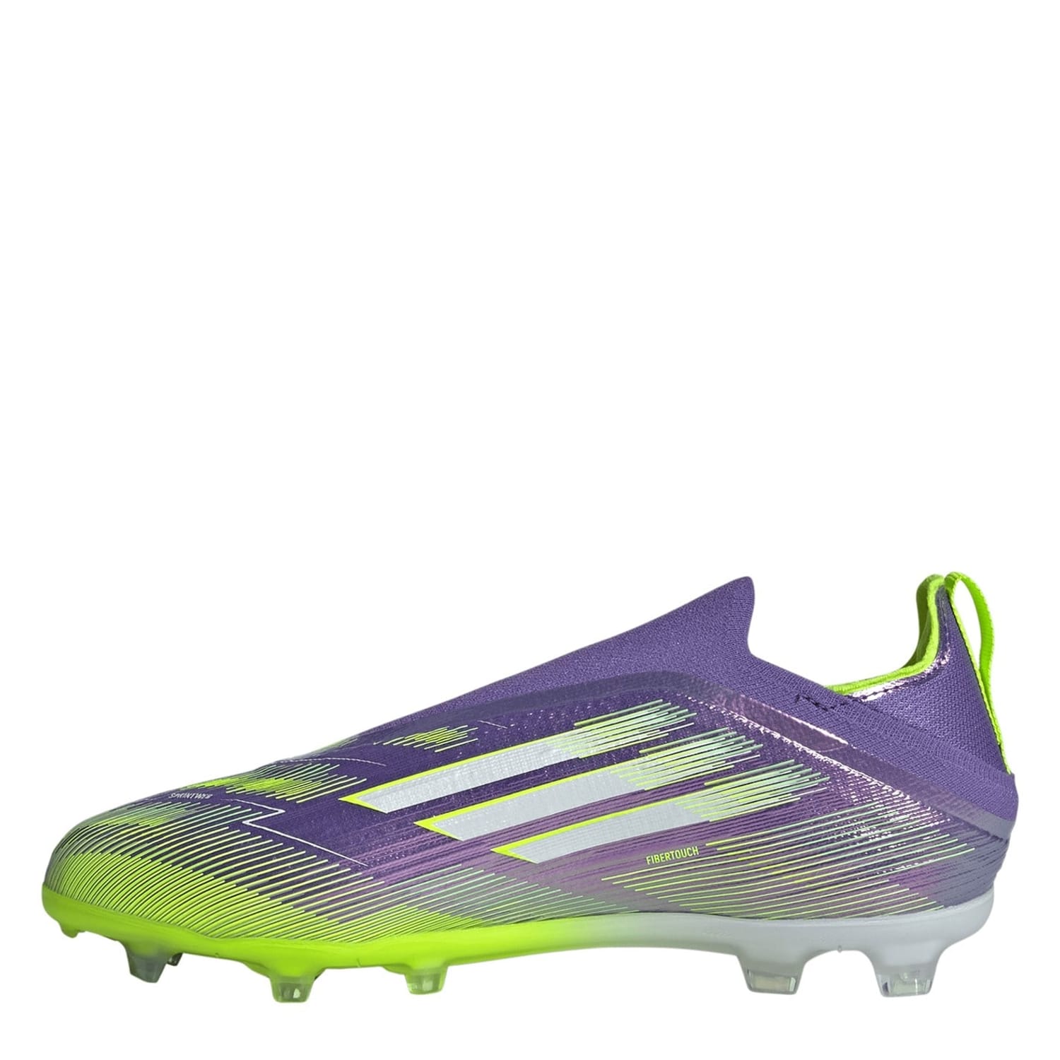 Help your youngster unlock their speed with the adidas F50 Laceless Firm Ground Football Boots. Designed for quick, agile play, these boots feature a lightweight Fibertouch upper and laceless design for a streamlined fit, paired with an adidas PRIMEKNIT collar for secure lockdown. The Sprintweb 3D texture ensures close ball control, while the Sprintplate 360 outsole delivers explosive pace on dry grass pitches. Perfect for young players who thrive on speed and precision.