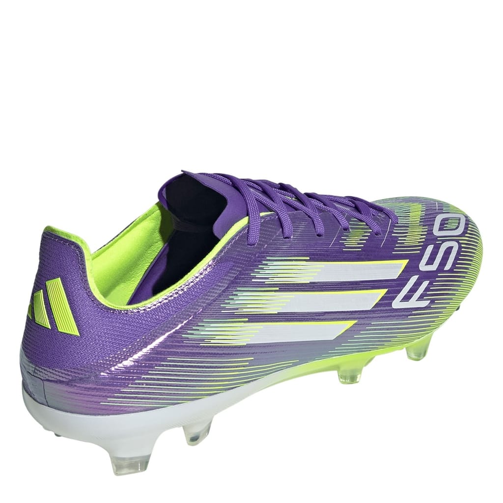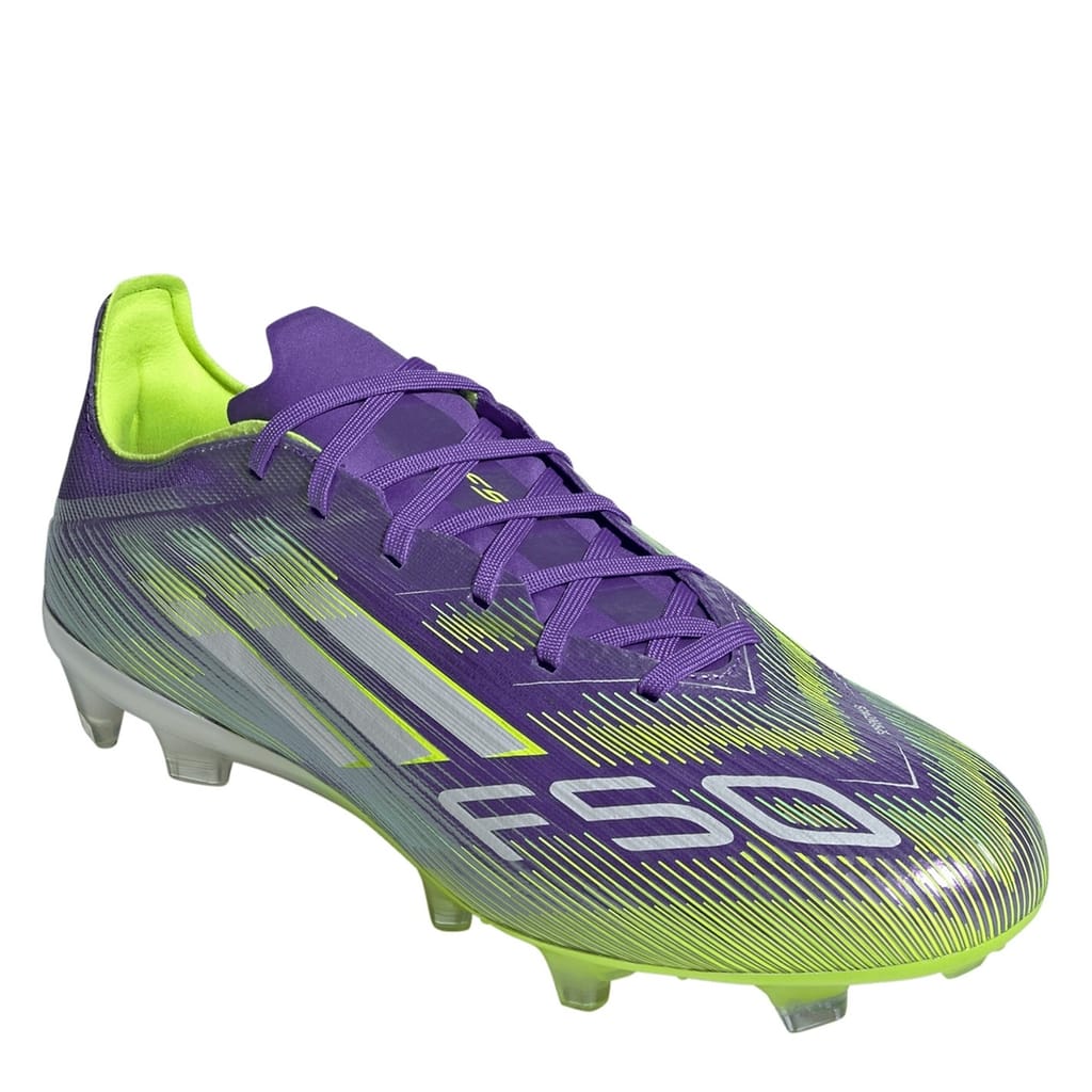 Unleash your speed and play with confidence in the adidas F50 Pro Firm Ground Football Boots. Built for players who thrive on pace, they feature a lightweight Fibertouch upper with Sprintweb 3D texture to keep the ball close at high speed. The Compression Fit Tunnel Tongue offers secure lockdown, while the Sprintshell 360 outsole delivers dynamic traction on firm, dry grass pitches.
