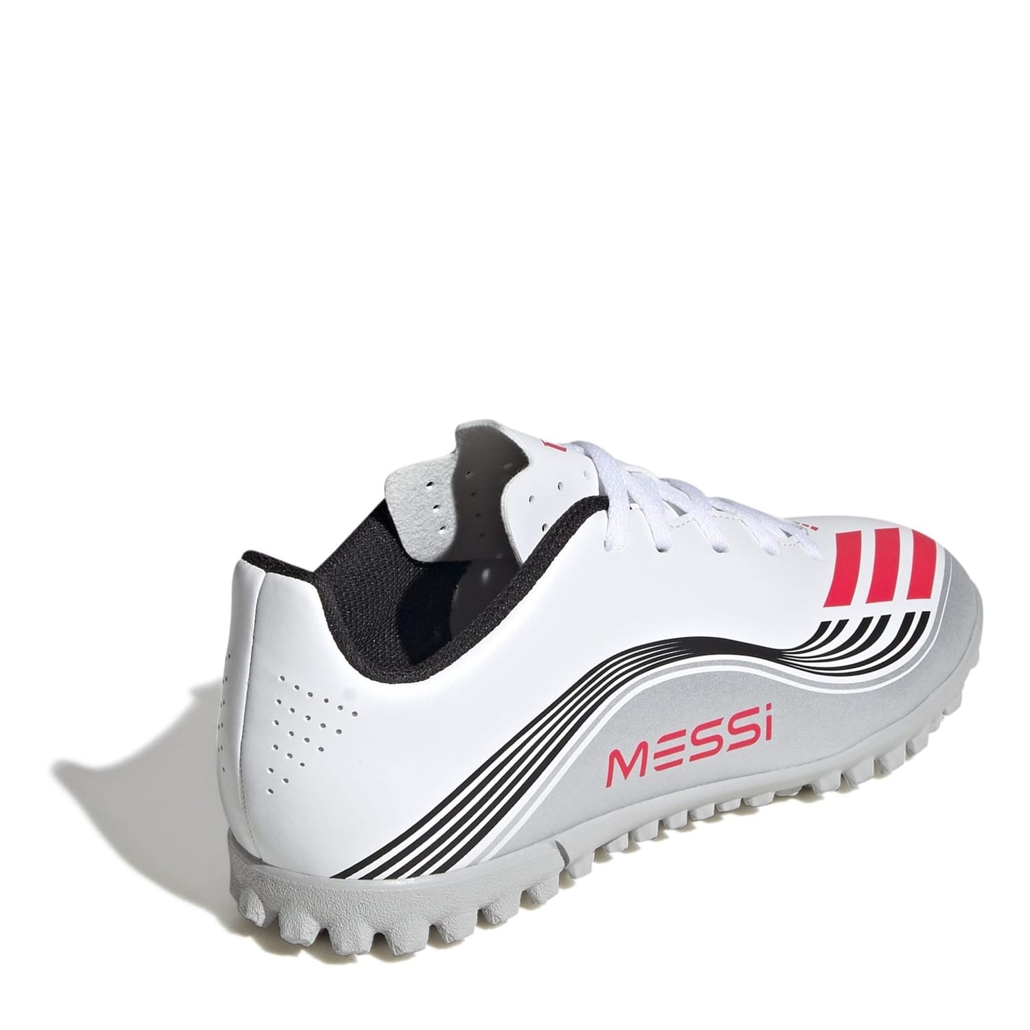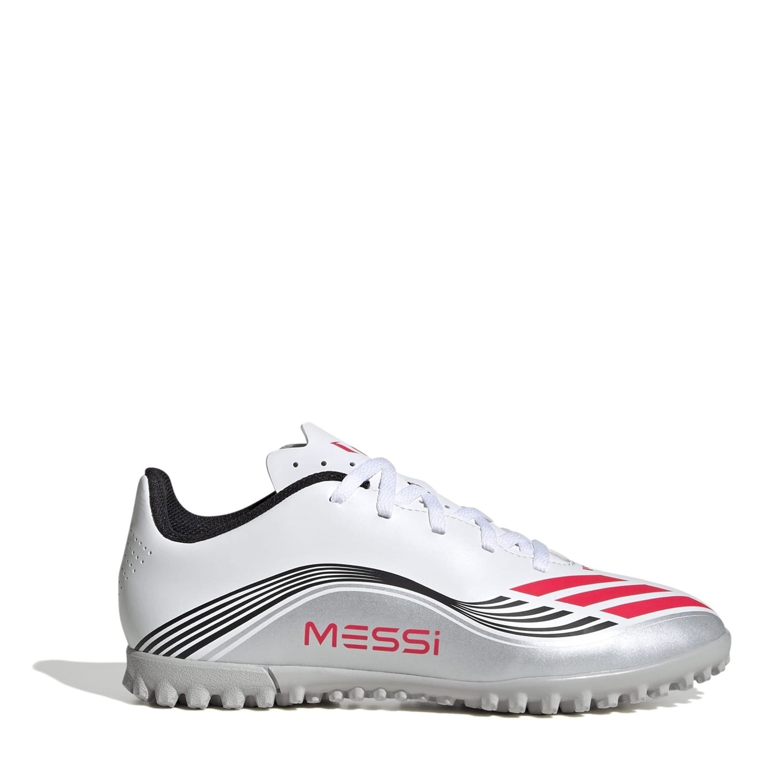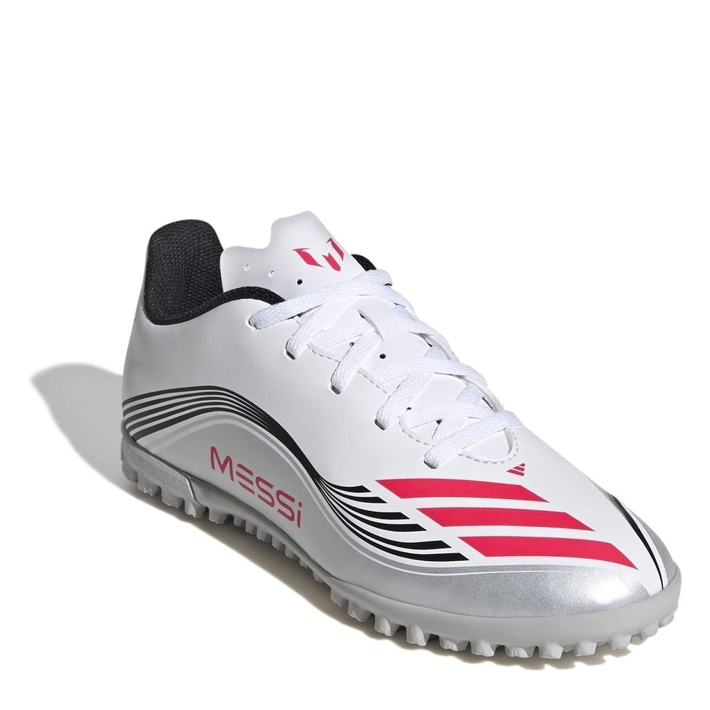 The adidas F50 Messi Club Juniors Astro Turf Football Boots are built for young players eager to showcase the speed and skill of Lionel Messi. The synthetic tongue adds lightweight comfort, while the lugged rubber outsole provides excellent grip. Perfect for training sessions or competitive matches.