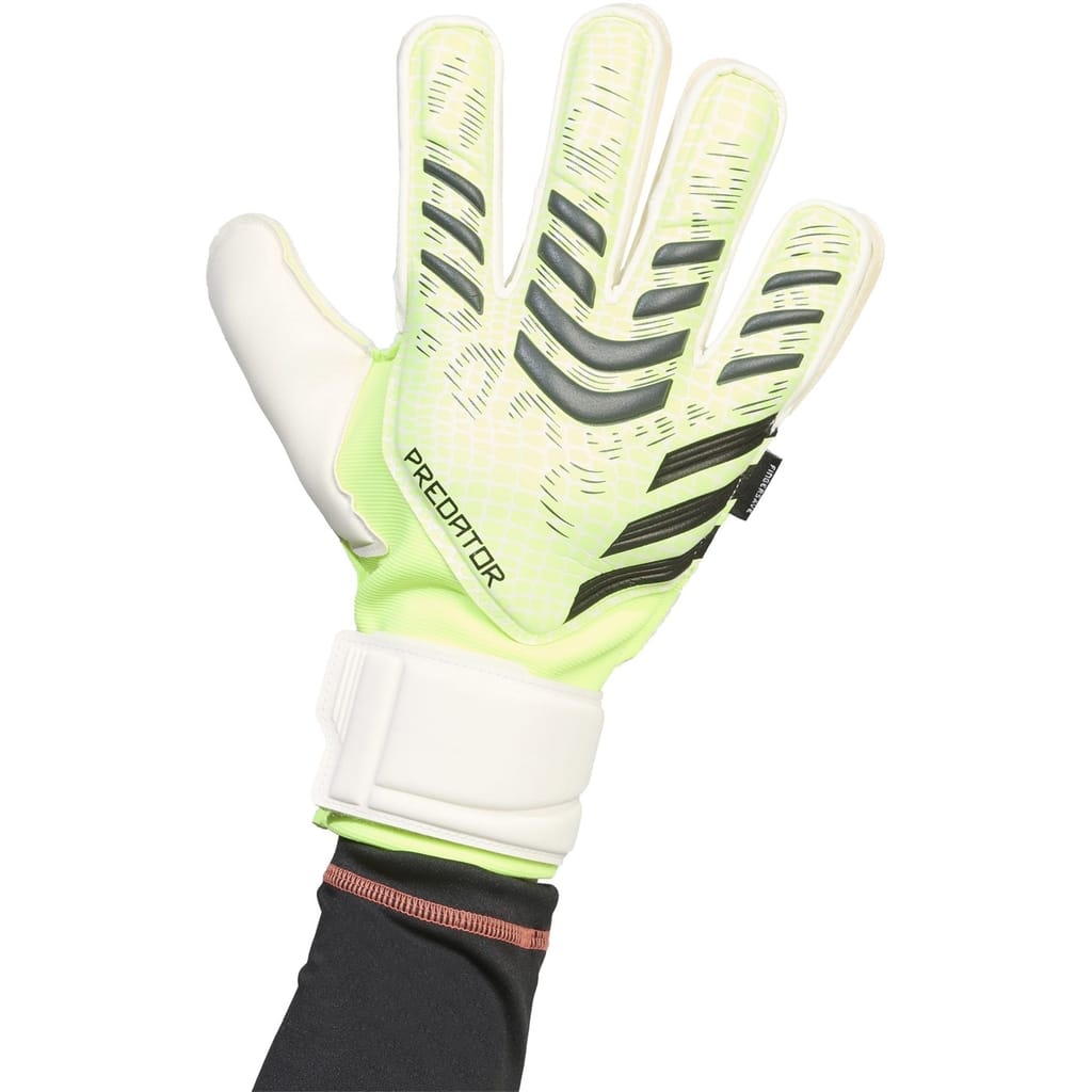 Take your goalkeeping skills to the next level with adidas' Predator Match Fingersave Goalkeeper Gloves. Featuring cushioned Soft Pro latex for superior grip and control, along with stiff yet flexible spines that offer enhanced finger support. Complete with the iconic 3-Stripes for a bold, athletic look, these gloves are perfect for keepers looking to keep clean sheets, game after game.