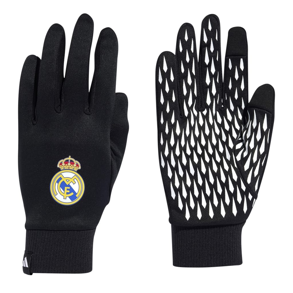 Don't let the colder months stop your game - these adidas Real Madrid Fieldplayer Gloves keep you showing your skills in comfort. Crafted in soft cotton for toasty comfort, the conductive fingertips work with touchscreens for unrestricted wear. With the club crest making your loyalty clear, these gloves are perfect for late training sessions, winter games or keeping warm.