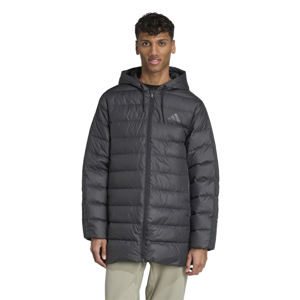 Stay warm this winter with the adidas down coat, designed for optimal insulation. Featuring a hooded neckline and a zipper closure, this coat ensures comfort and protection against the cold. The solid pattern and regular fit offer a classic look, while the straight hem adds a touch of simplicity. Ideal for winter, this coat is a reliable choice for chilly days. -