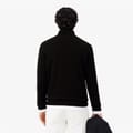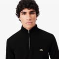 This Lacoste top features a zip neck and a regular fit, offering a classic look with its solid pattern. The long sleeves are complemented by ribbed cuffs, while the ribbed collar adds a touch of sophistication. Crafted with a knit texture, it includes a logo embellishment for a subtle brand statement. The zipper closure ensures ease of wear. -