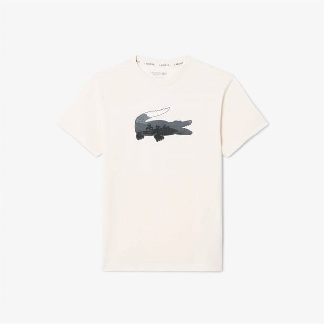 This Lacoste top features a regular fit and short sleeves, perfect for casual wear. The standout element is its graphic print, showcasing a distinctive crocodile design. Ideal for those who appreciate a blend of comfort and style. -