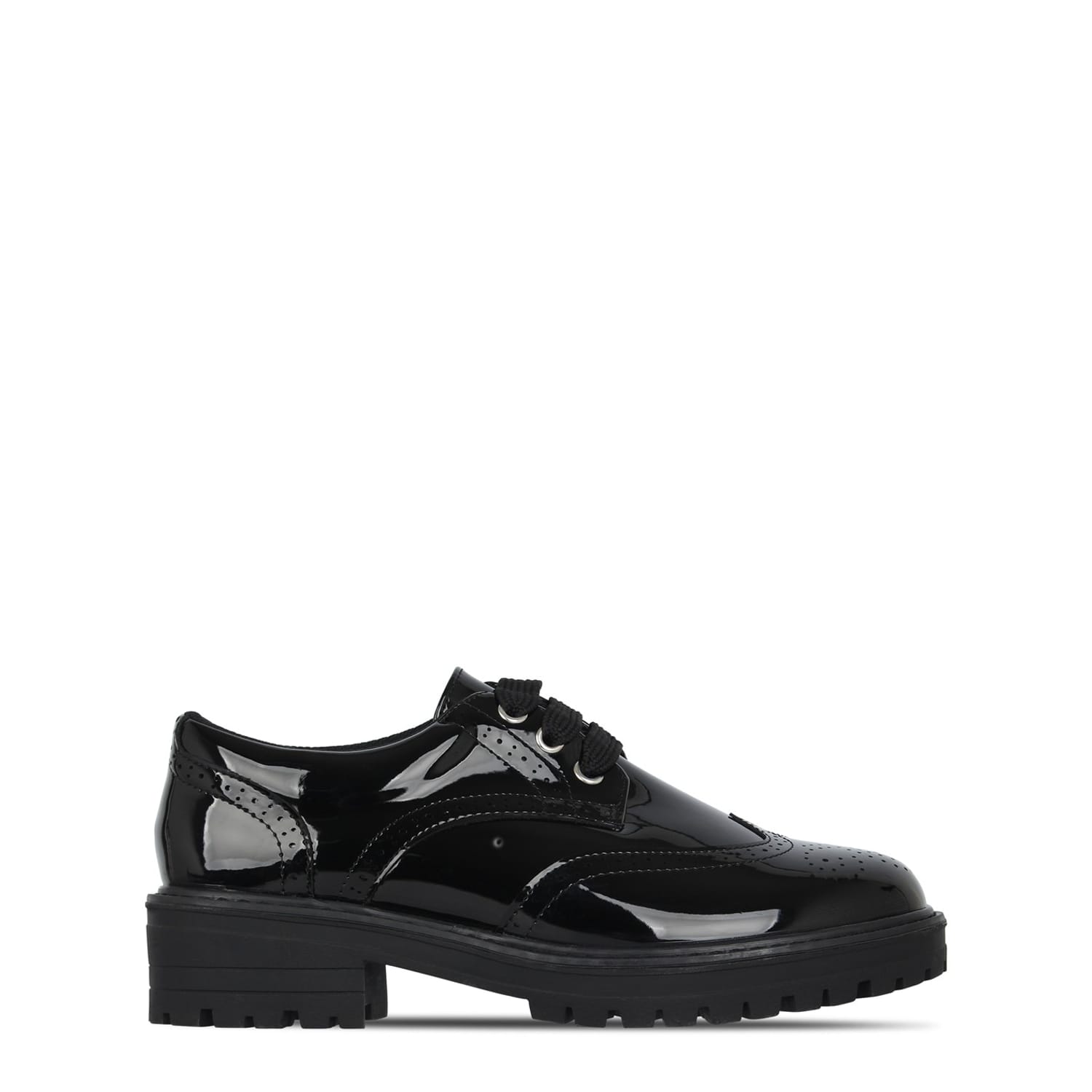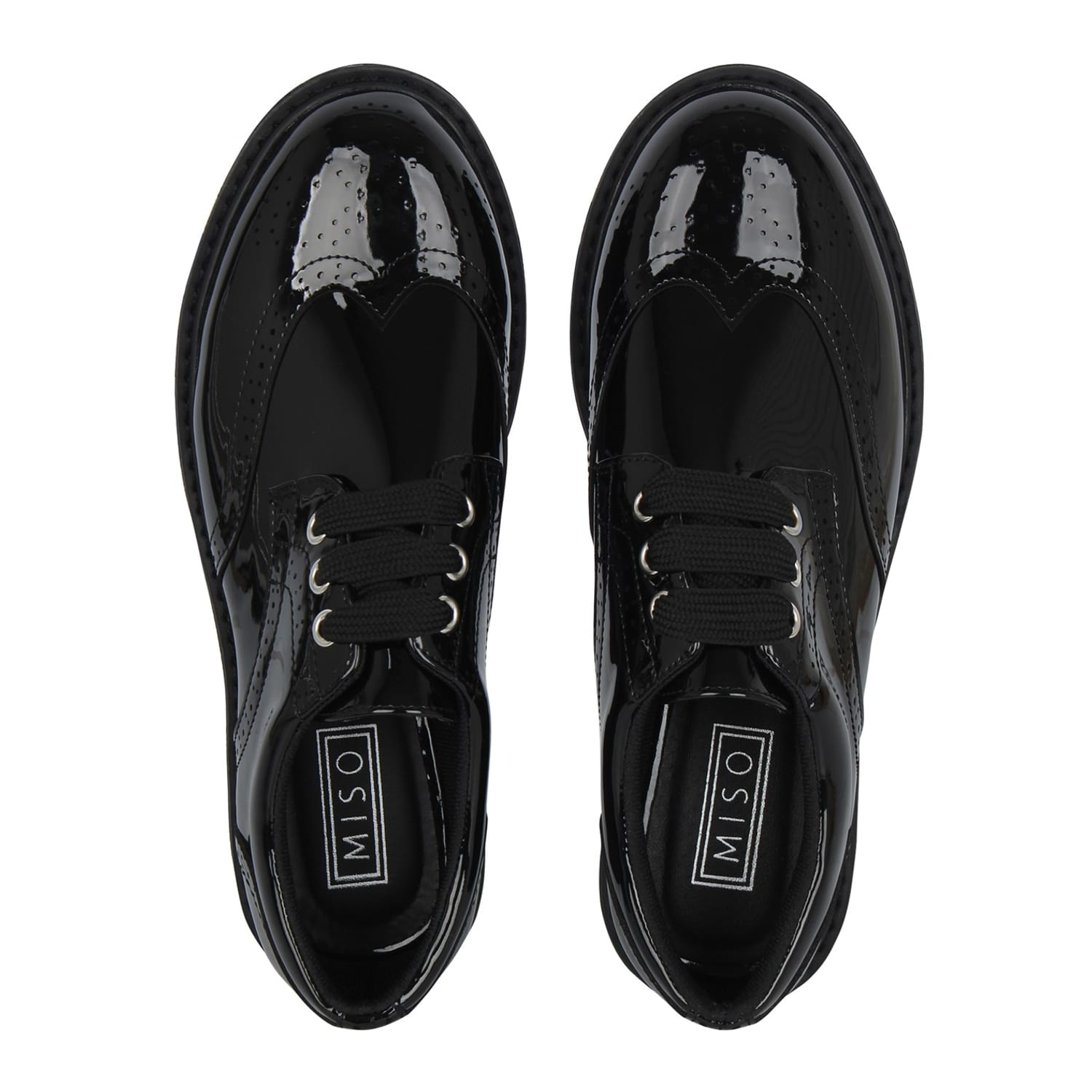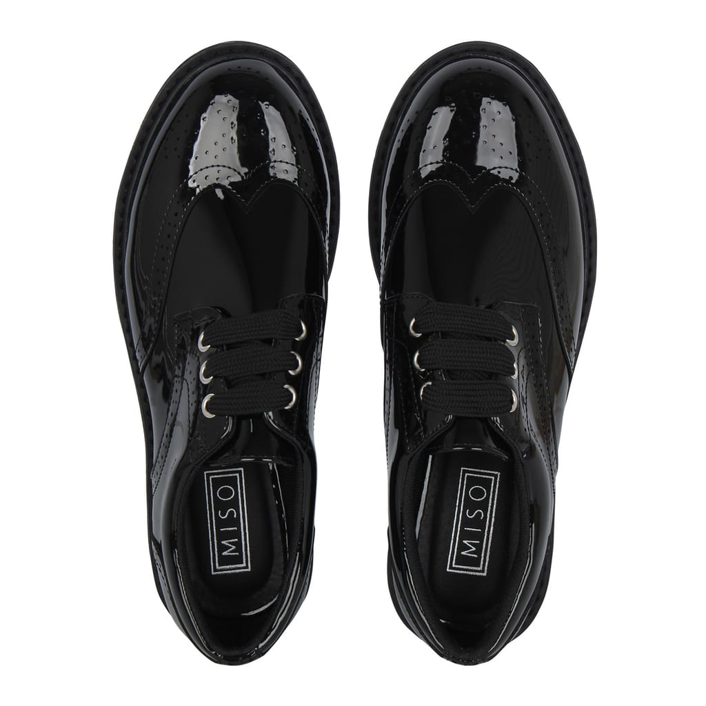 The Kids Miso Chunk Brogue Shoes are perfect for heading back to school, crafted with a shaped ankle collar along with a lace fastening that provides a secure fit, teamed with a cushioned insole and chunky outsole that provides comfort with every step. A patent finish to the upper along with brogue detail gives a smart and stylish look, finished off with the Miso branding. -