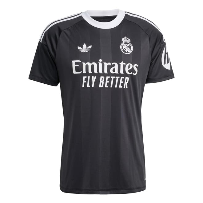 Stand tall between the posts in the adidas Real Madrid Third Goalkeeper Shirt 2025/26. Designed with adidas AEROREADY to keep you cool and dry under pressure, it features a retro-inspired look that nods to classic football heritage. Finished with an embroidered Trefoil and the club’s iconic crest, it's ideal for matchdays, training, or showing your pride in goalkeeping style.
