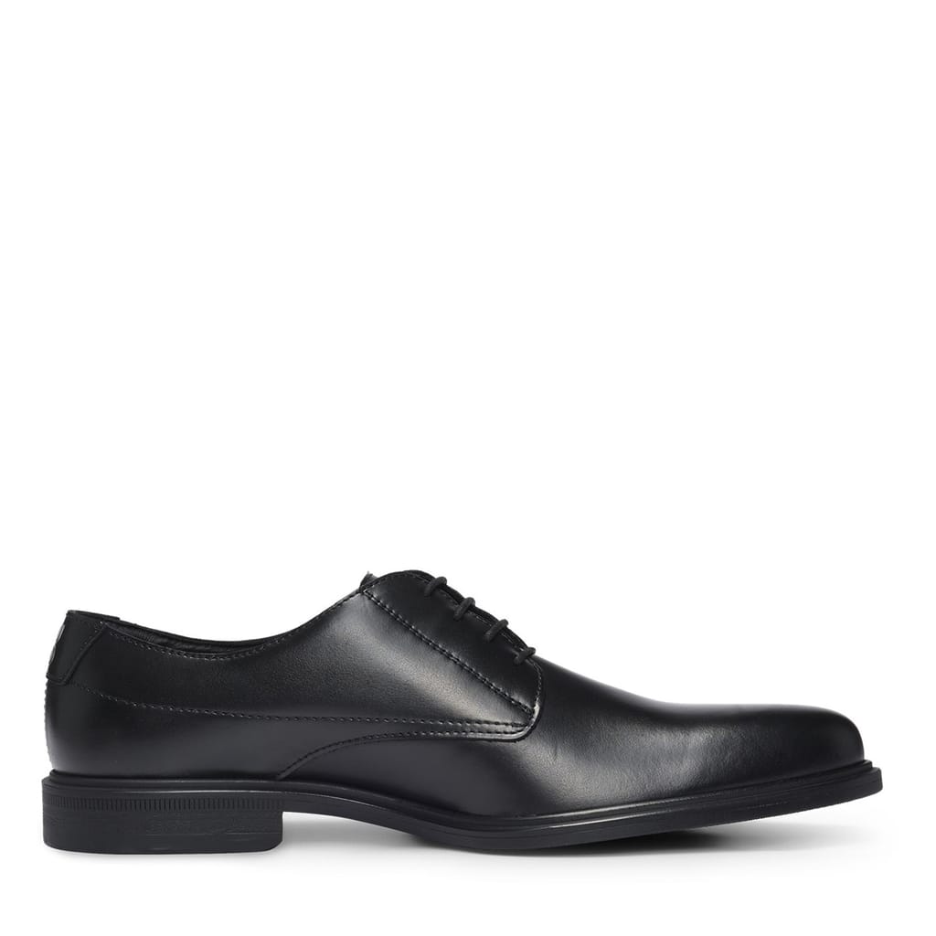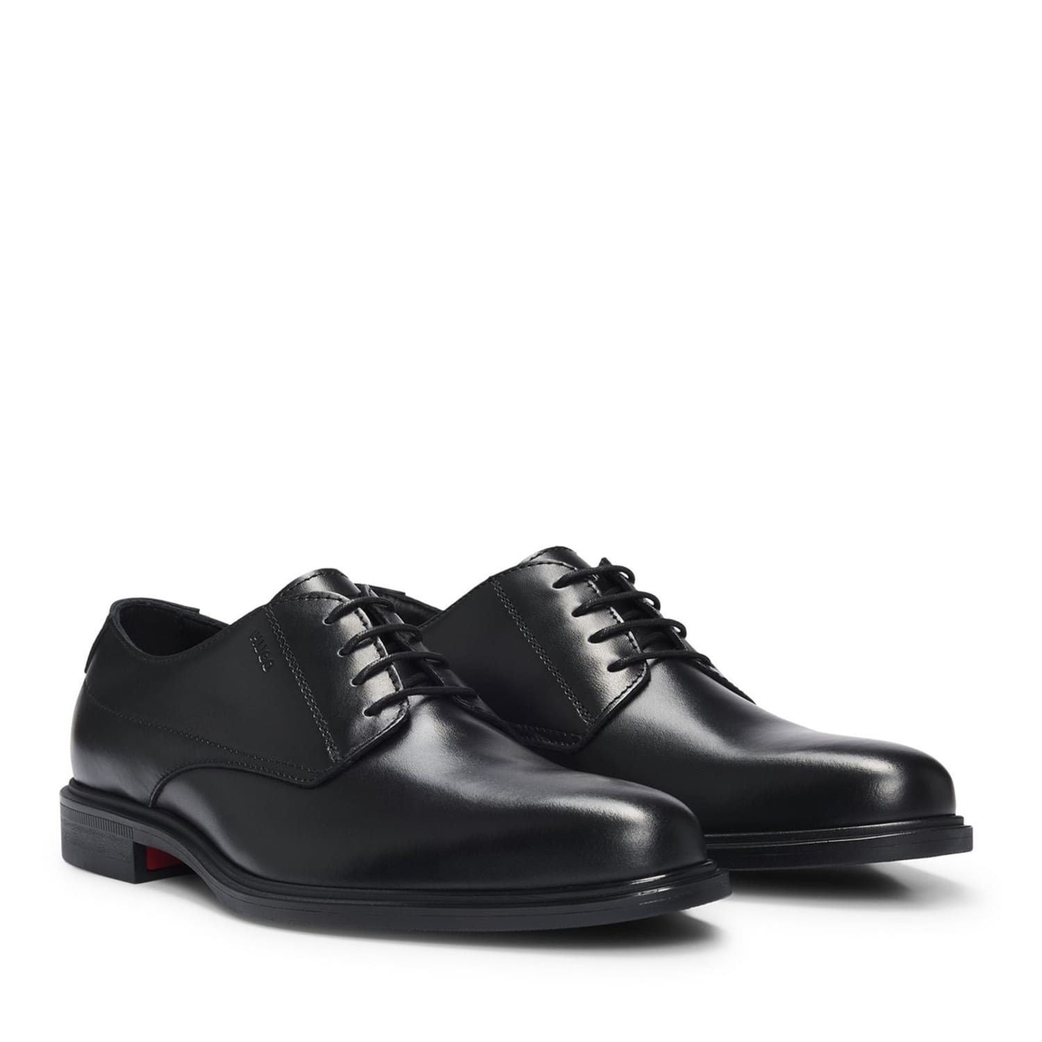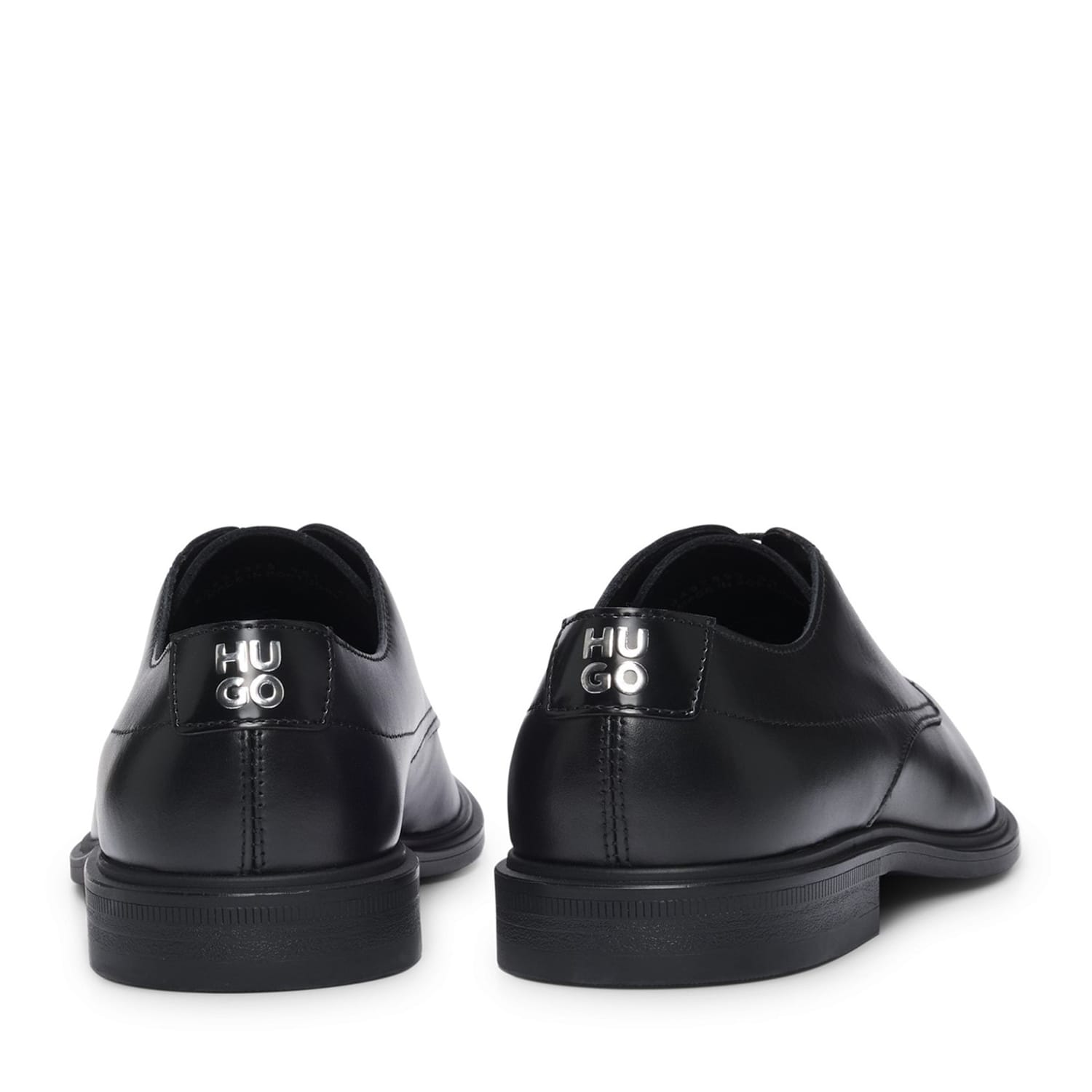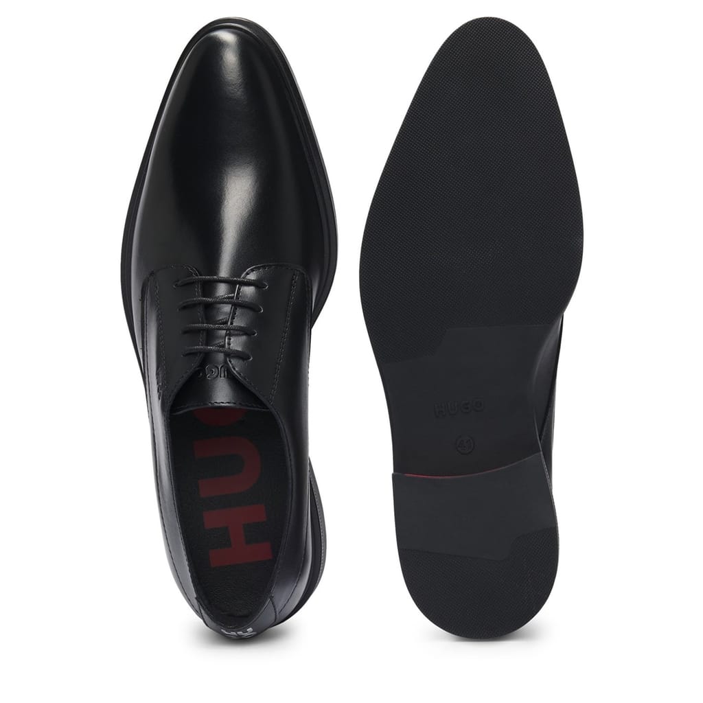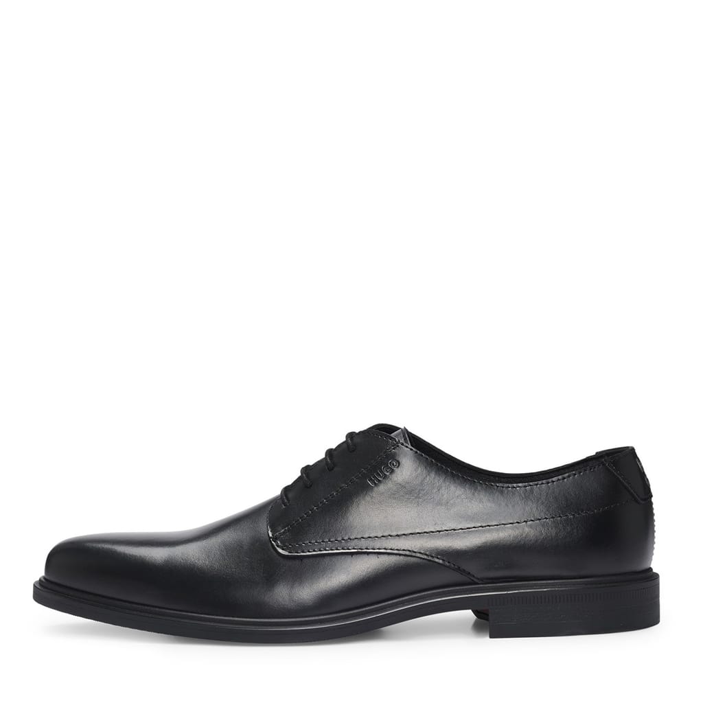 Step into sophistication with Hugo leather Oxfords. Crafted with a round toe, these shoes blend classic design with modern elegance. The leather construction ensures durability and timeless appeal, making them a perfect choice for formal occasions or professional settings. -