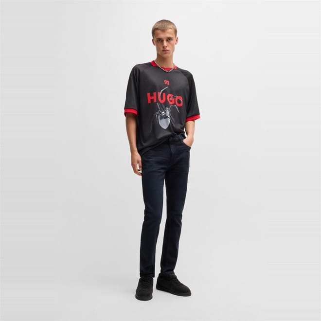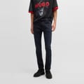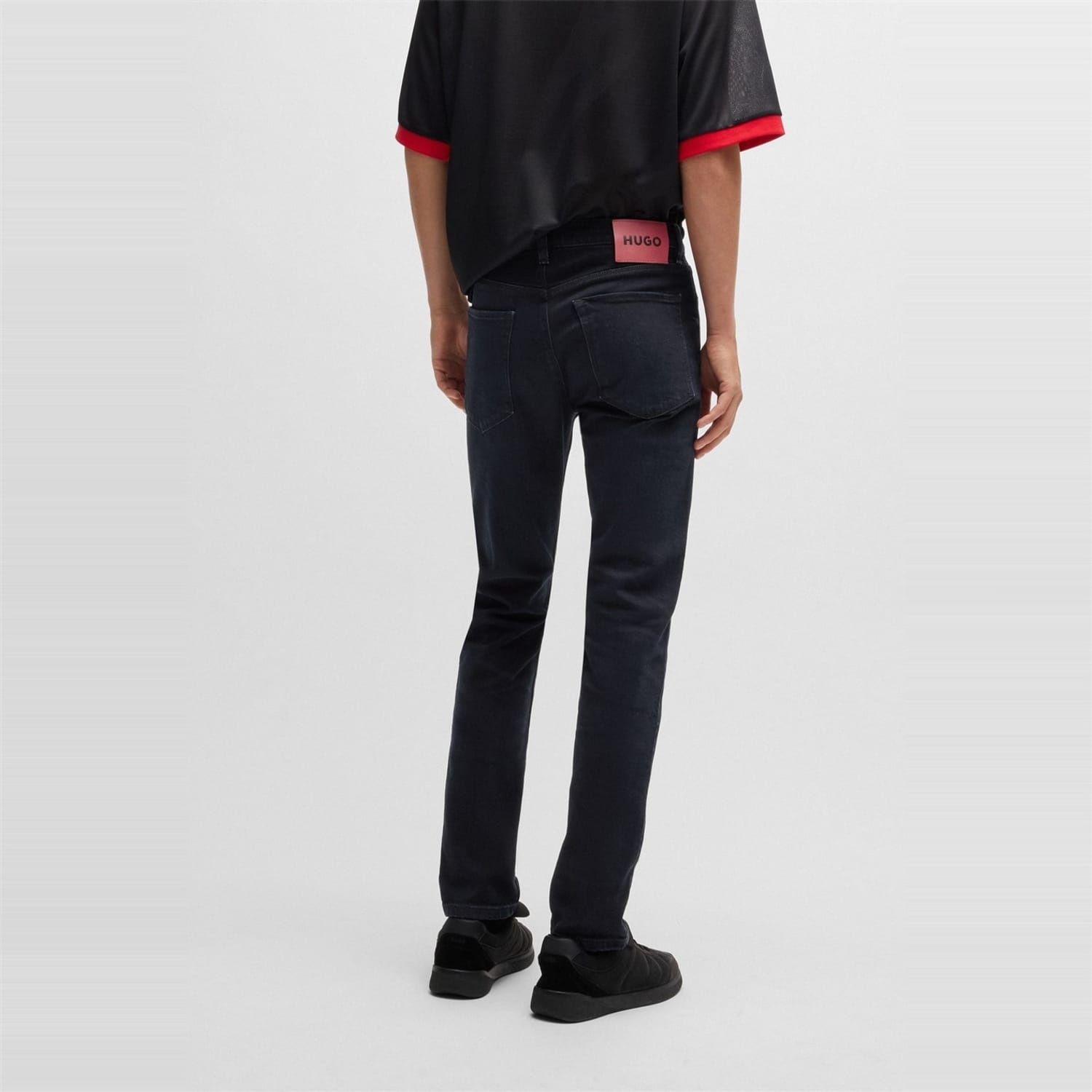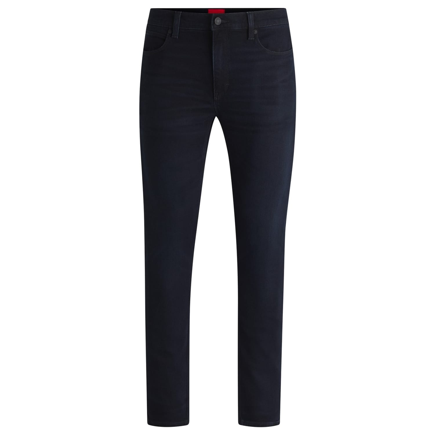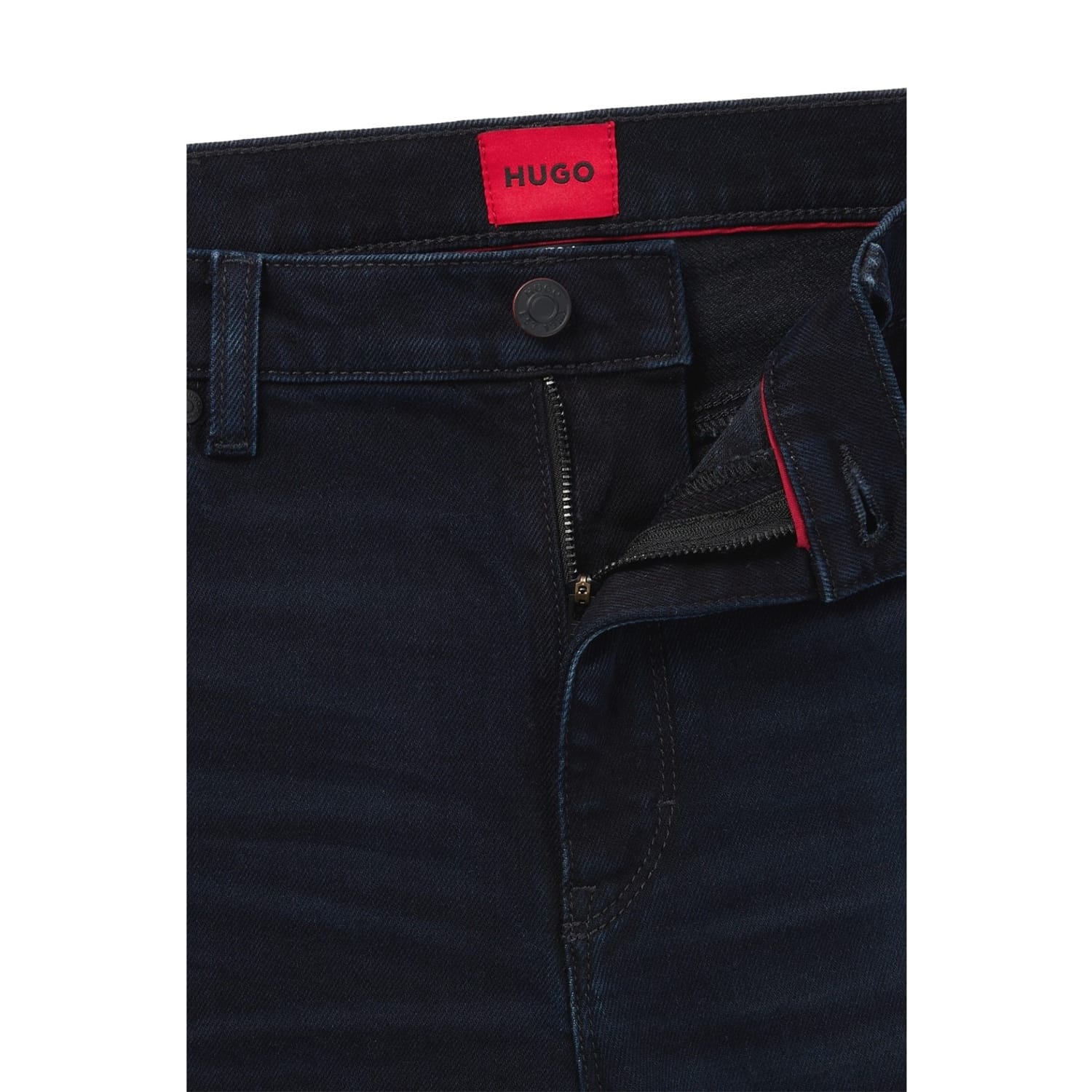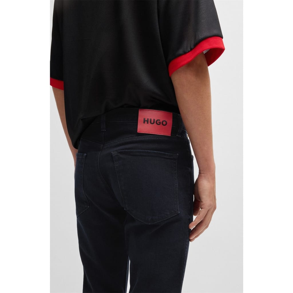 Discover the Hugo five-pocket design jeans, featuring a zip fly and button closure for a secure fit. These slim-fit jeans are adorned with a subtle logo and logo patch, adding a touch of brand identity. Perfect for those seeking a blend of style and comfort in their wardrobe. -