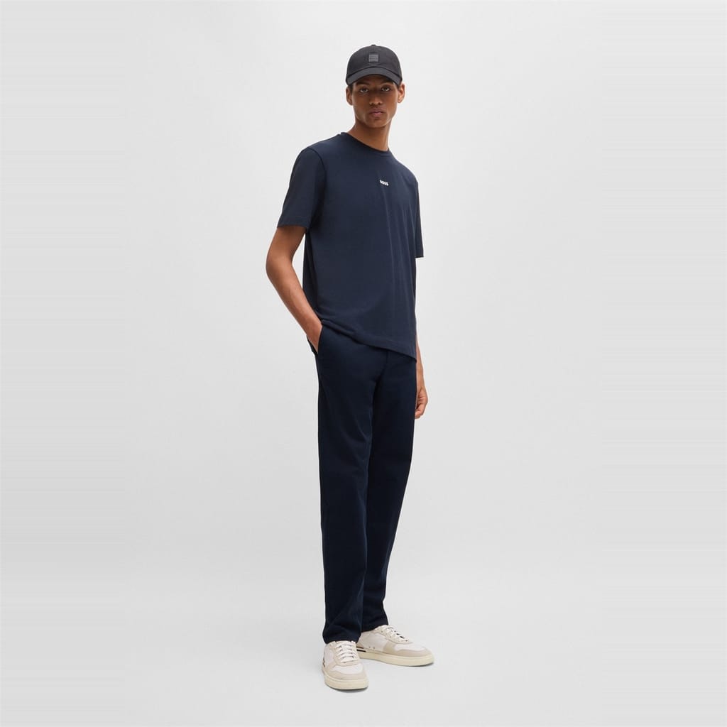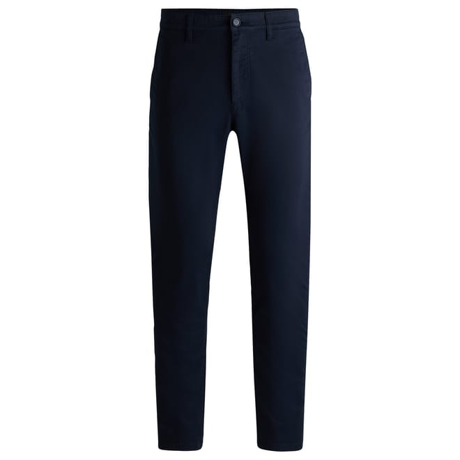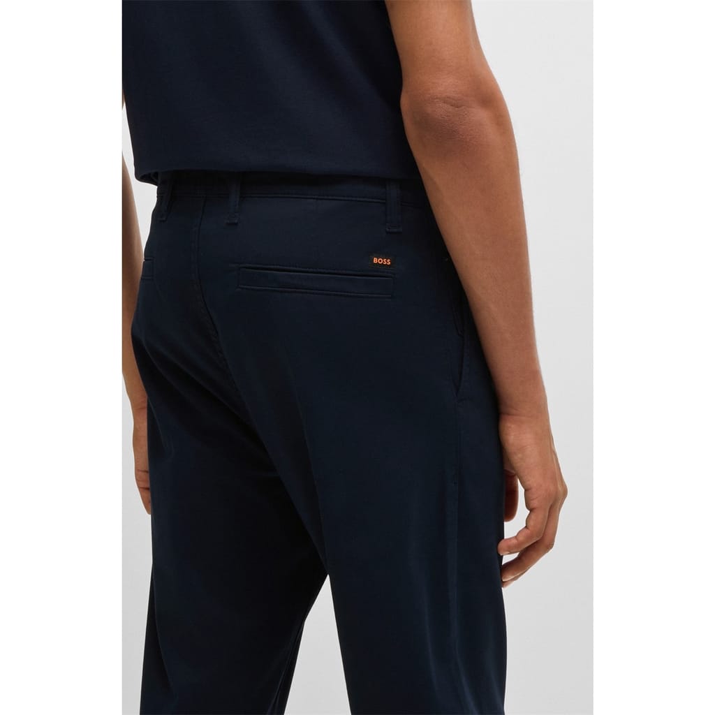 Elevate your wardrobe with Boss chinos, perfect for both casual and workwear collections. These pants feature a zip fly closure and are adorned with a subtle logo and practical pockets, offering a blend of style and functionality. -