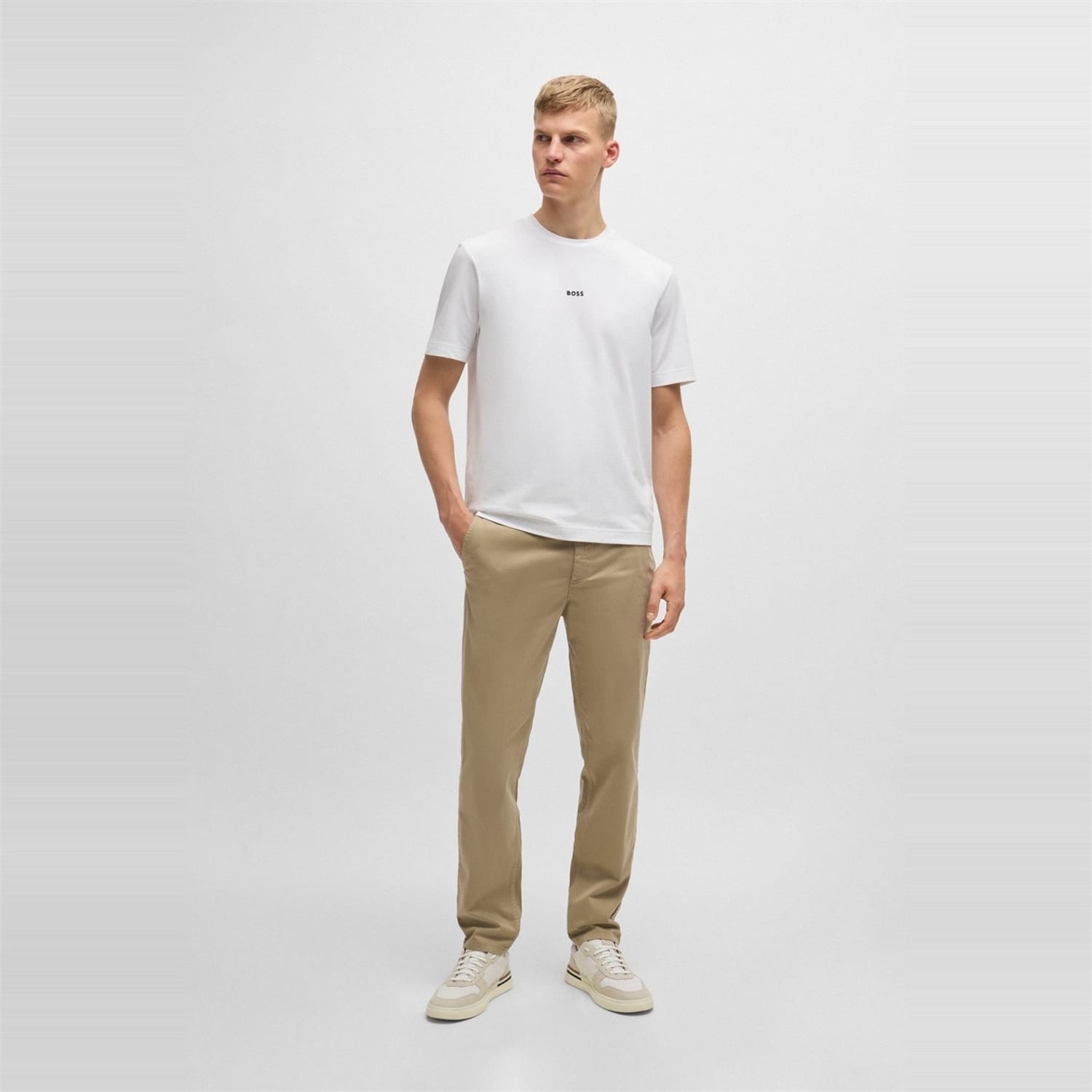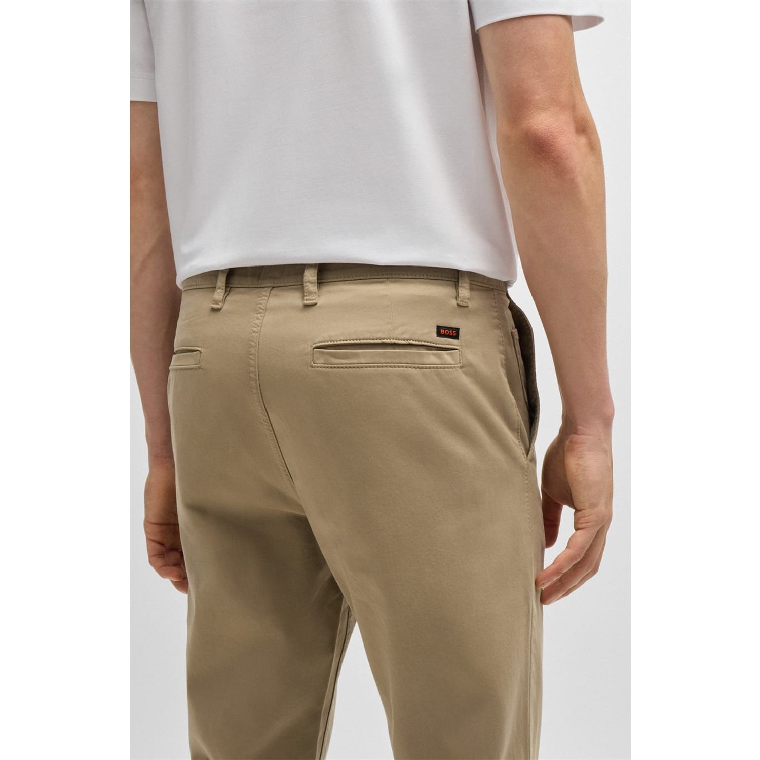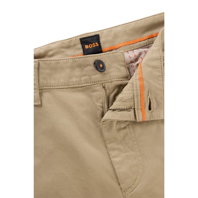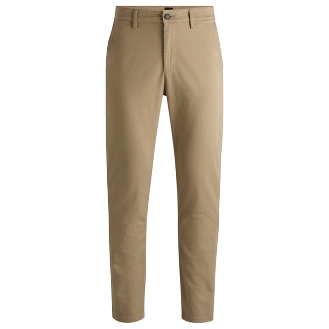 Elevate your wardrobe with Boss chinos, perfect for both casual and workwear collections. These pants feature a zip fly and button closure, offering a sleek and comfortable fit. The subtle logo embellishment adds a touch of sophistication, making them a versatile addition to any outfit. -
