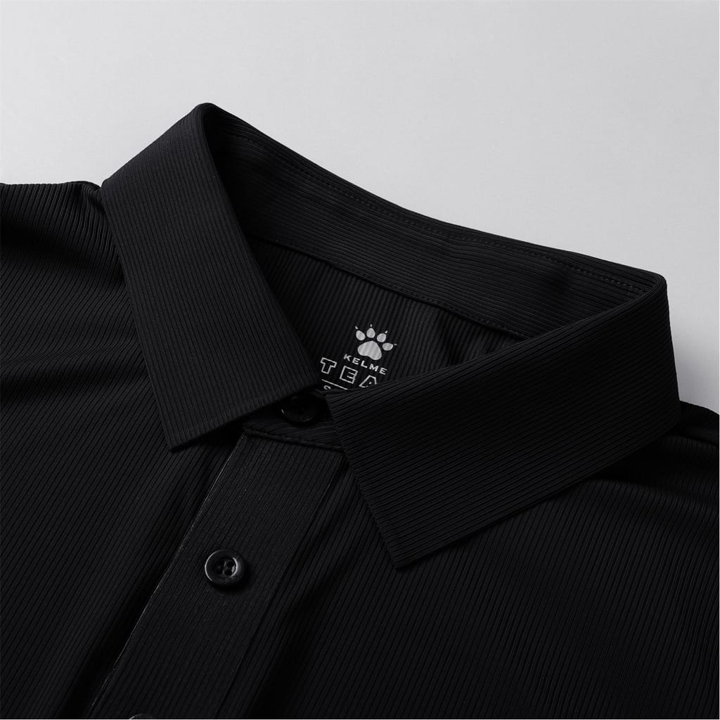 - • Ribbed knit collar & 2-button placket