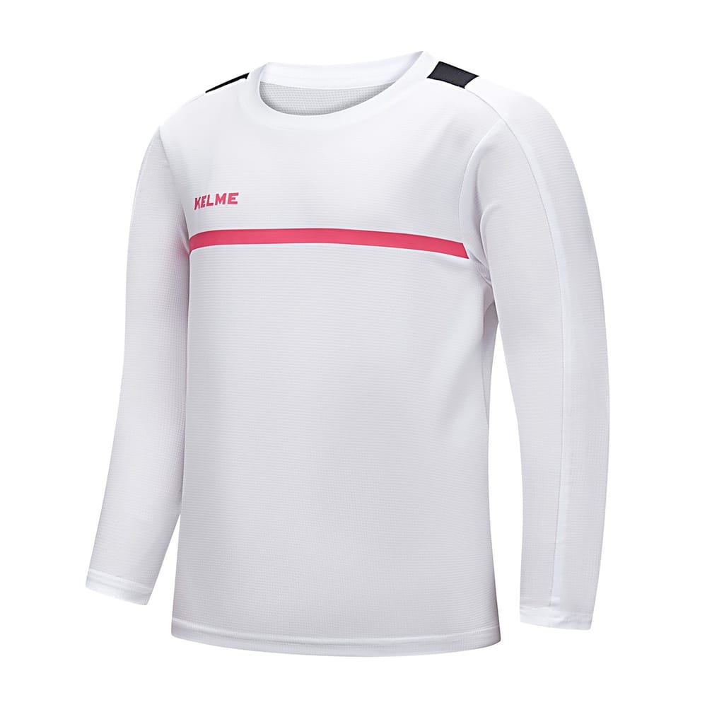 Kelme activewear top features a performance design with a long sleeve and crew neck. The color block pattern adds a stylish touch, while the logo embellishment highlights the brand's identity. Ideal for those seeking a functional and fashionable addition to their wardrobe. -