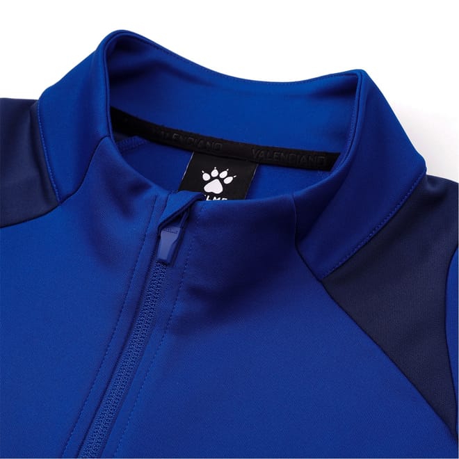 Kelme training jacket features a zip neck and a solid pattern, offering a regular fit. The jacket is designed with a zipper closure, ribbed cuffs, and a ribbed hem. It includes a logo embellishment, adding a touch of brand identity. -