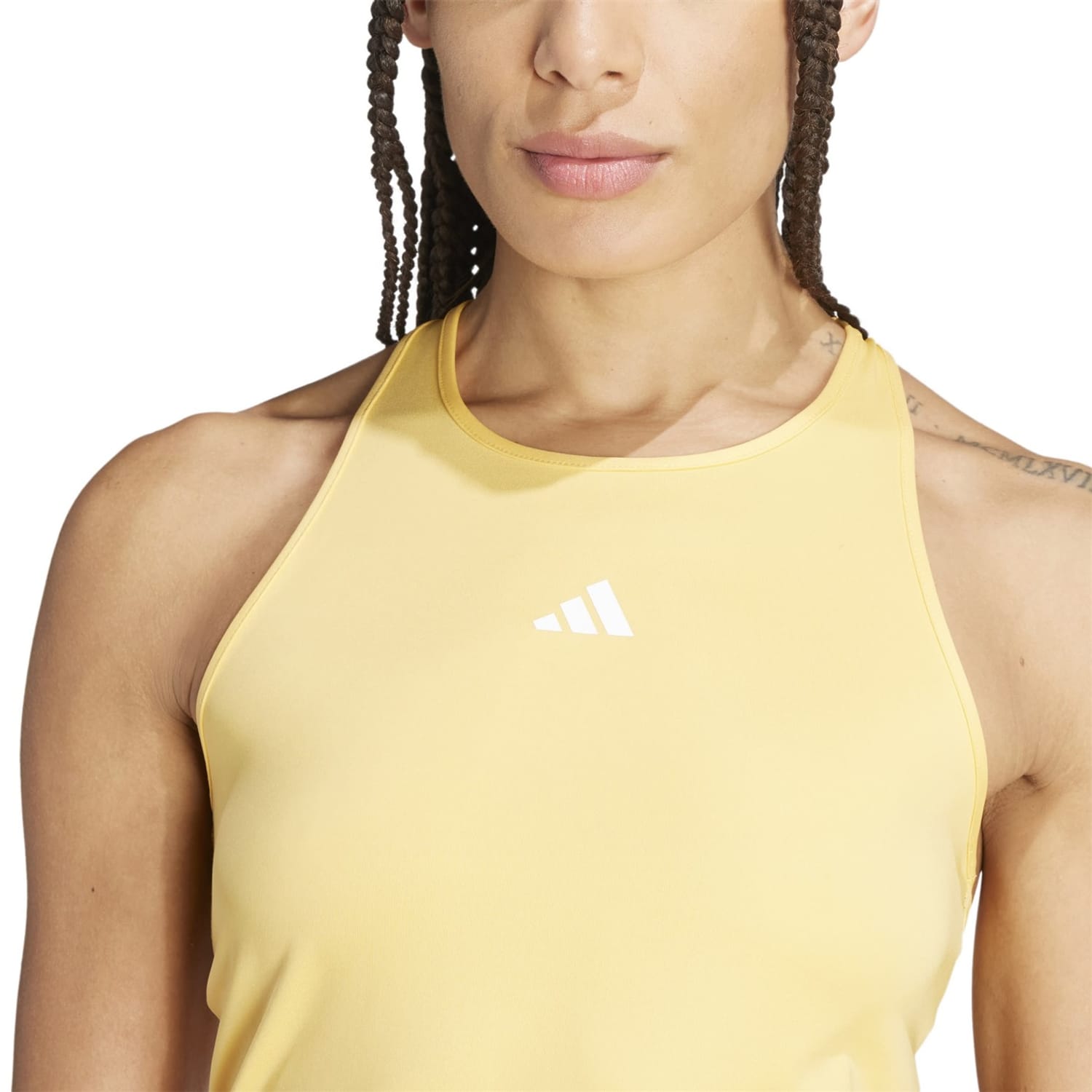 This adidas top is a perfect addition to your activewear collection. Designed for performance, it features a high neck and a sleeveless design, offering a slim fit that enhances your workout experience. The solid pattern is complemented by a subtle logo embellishment, making it a stylish choice for gym sessions. -