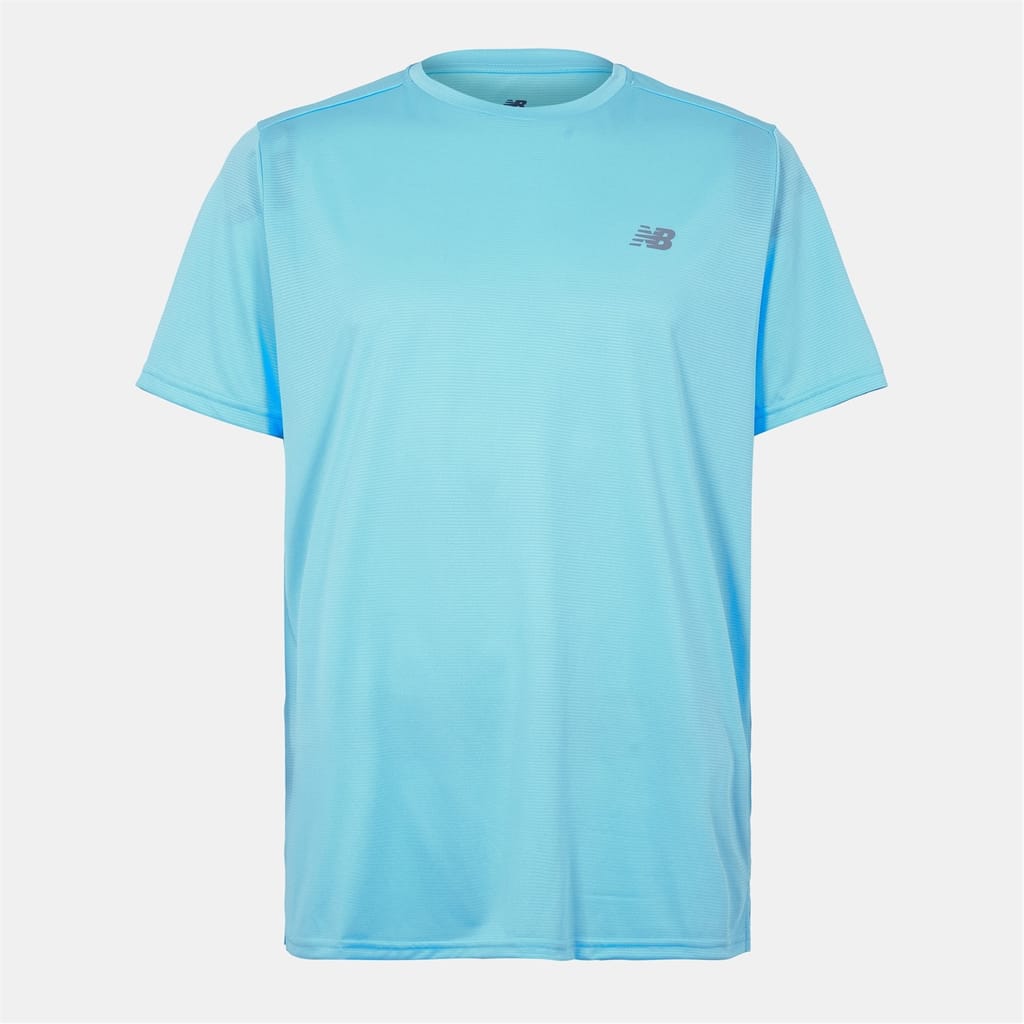 This New Balance top is designed for sporting activity, featuring a solid pattern and a crew neck. The short sleeves and regular fit ensure comfort and ease of movement. A subtle logo embellishment adds a touch of brand identity to this performance-focused piece. -