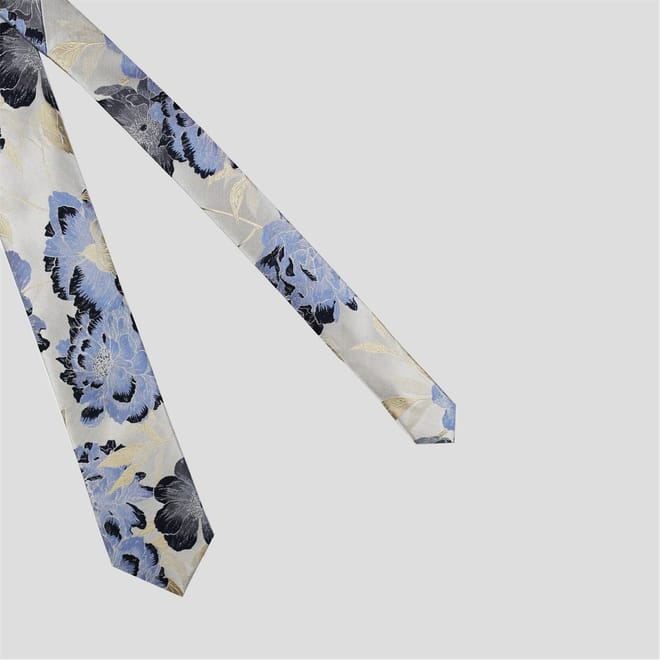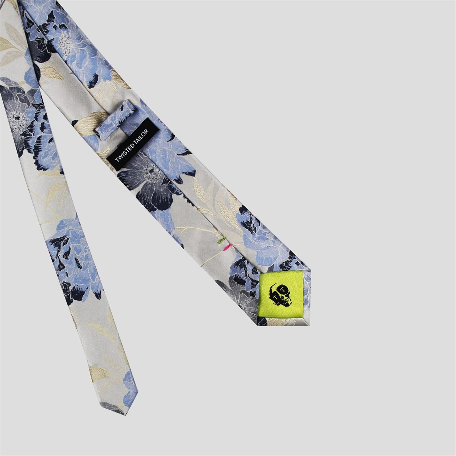 The Twisted Tailor Silver Floral Tie can elevate any suit with sophistication and a unique design. The floral pattern creates a distinguishable and modern look so that you can feel confident with any outfit. Whether you are going to a wedding or a formal gathering, this tie suits any formal occasion by giving you a luxurious style.
