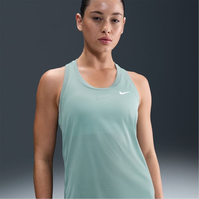 The Nike Dri-FIT Women's Racerback Tank is a great addition to your gym attire, featuring a lightweight fabrication coupled with racerback straps, a rounded neckline and flat lock stitching that offers a comfortable fit with complete freedom of movement. Dri-Fit technology helps wick sweat away from the skin to keep you feeling dry and focused, a solid colouring along with the Nike Swoosh branding completes the look. Machine washable, follow care label instructions. -
