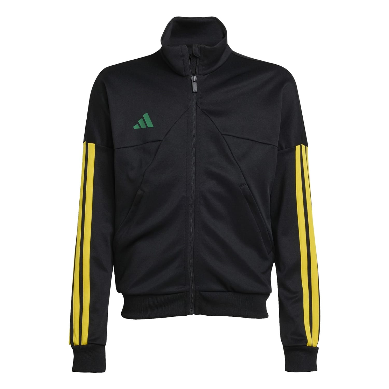 Entrance or exit, this juniors' adidas track top turns heads. Classic 3-Stripes and a 3 Bar Logo on the chest show off your love for the beautiful game. Zip pockets keep essentials secure so you can focus on leaving a mark. -