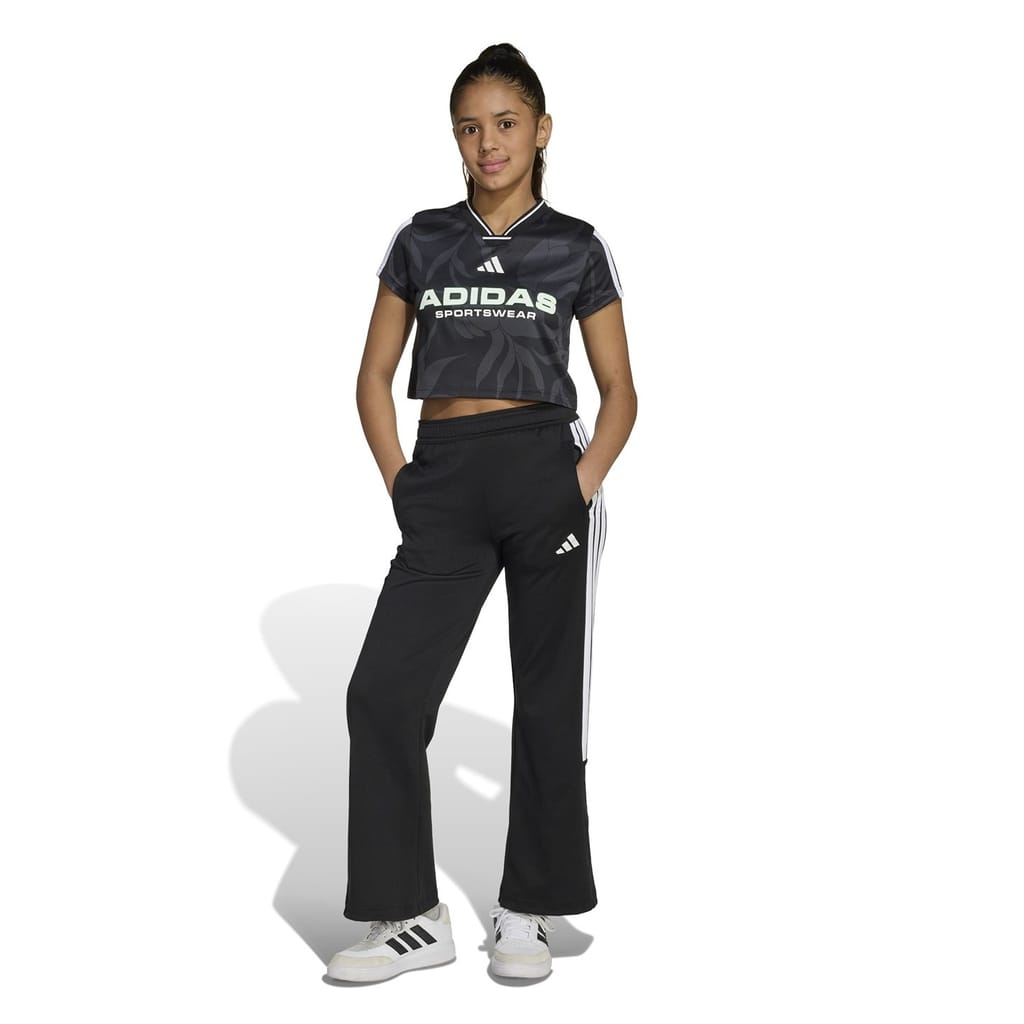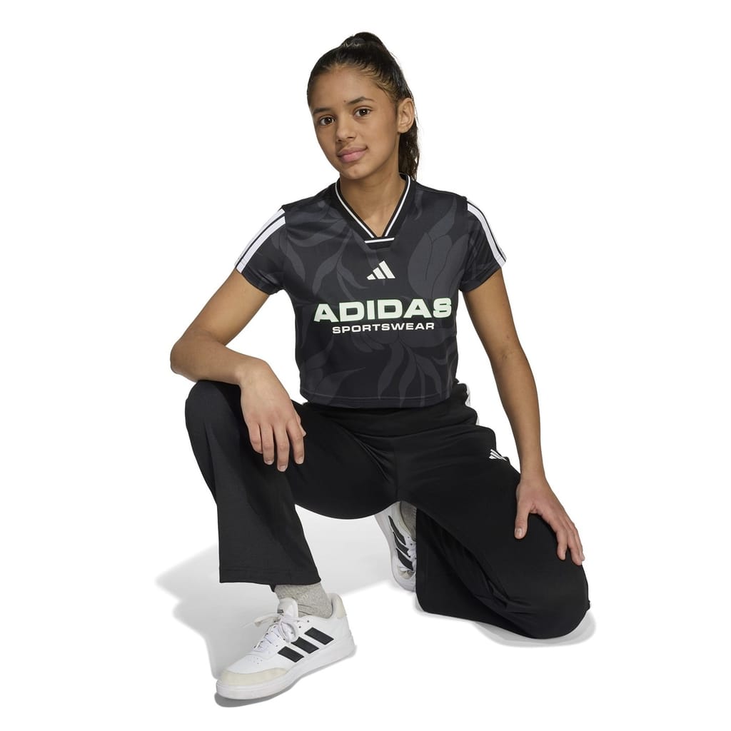 This juniors' football-inspired tee from the House of Tiro collection takes the iconic 3-Stripes and 3 Bar Logo and reimagines them for the fashion-forward fan. The soft doubleknit fabric keeps you comfortable so you can rep your team in style. Pair it with high-waisted shorts for a winning match-day look.