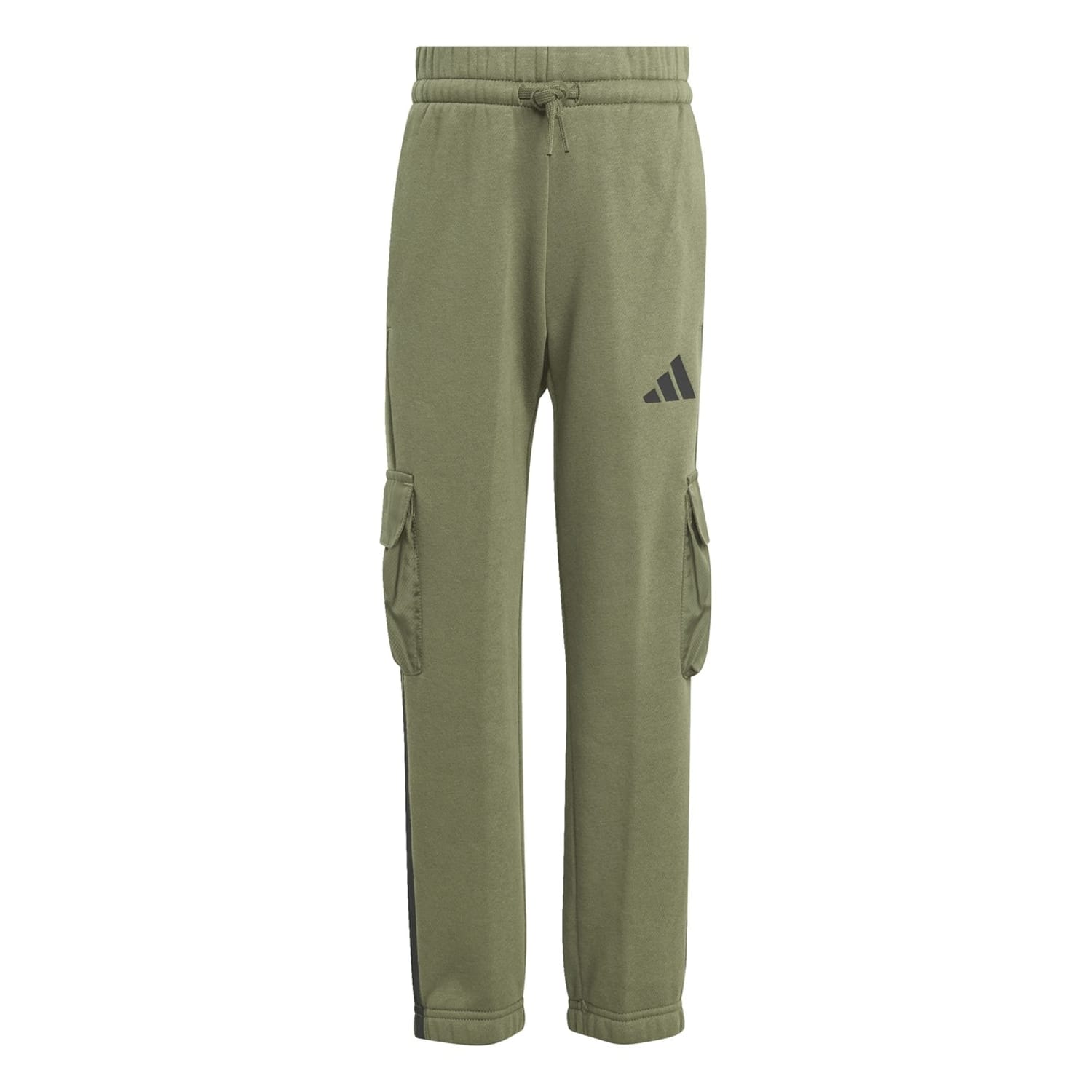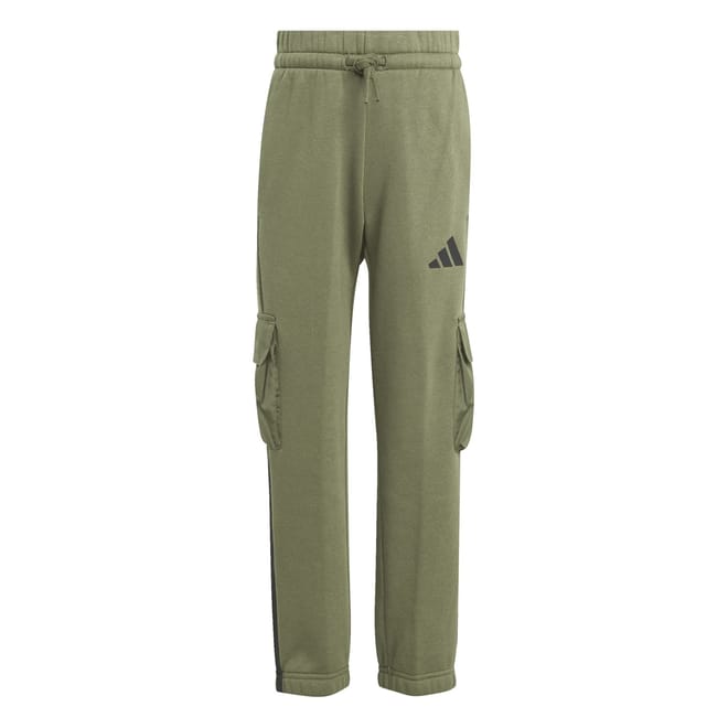 These adidas cargo pants feature a practical drawstring closure and are designed with multiple pockets for added functionality. The iconic logo embellishment adds a touch of brand recognition, making these pants a versatile choice for casual wear. -