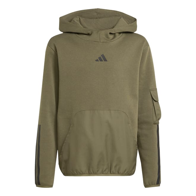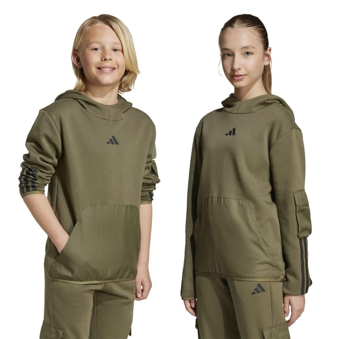This adidas top features a hooded neck and long sleeves, offering a regular fit. The solid pattern is complemented by practical pockets and a distinctive logo embellishment, making it a versatile addition to your wardrobe. -