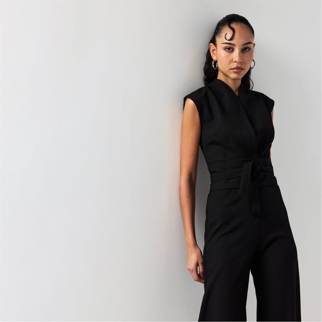 - Clean lines and minimal design details make this jumpsuit an ideal canvas for statement accessories.