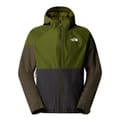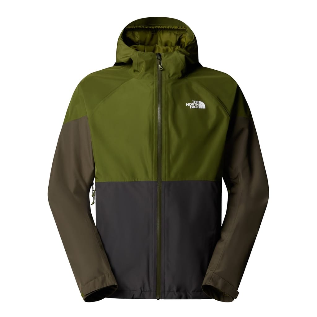 The North Face jacket features a hooded neck and a zipper closure, offering a water-repellent finish. Designed with a regular fit and a straight hem, it showcases a colour block pattern and a logo embellishment. -