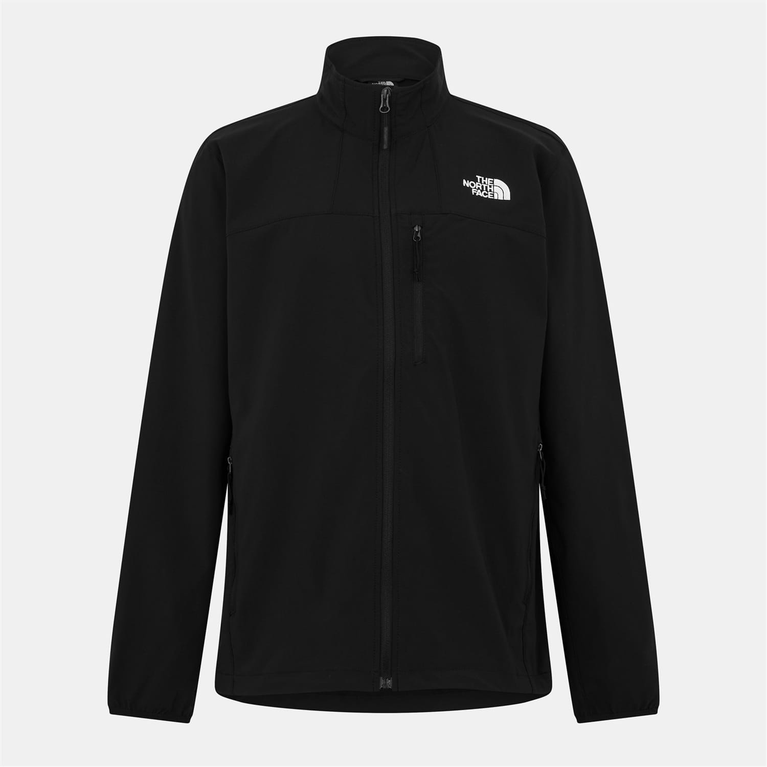 The North Face softshell jacket features a zip neck and a regular fit, offering a sleek and functional design. It includes a zipper closure and elasticated cuffs for added comfort. The solid pattern and straight hem create a clean look, while the logo embellishment adds a touch of brand identity. -