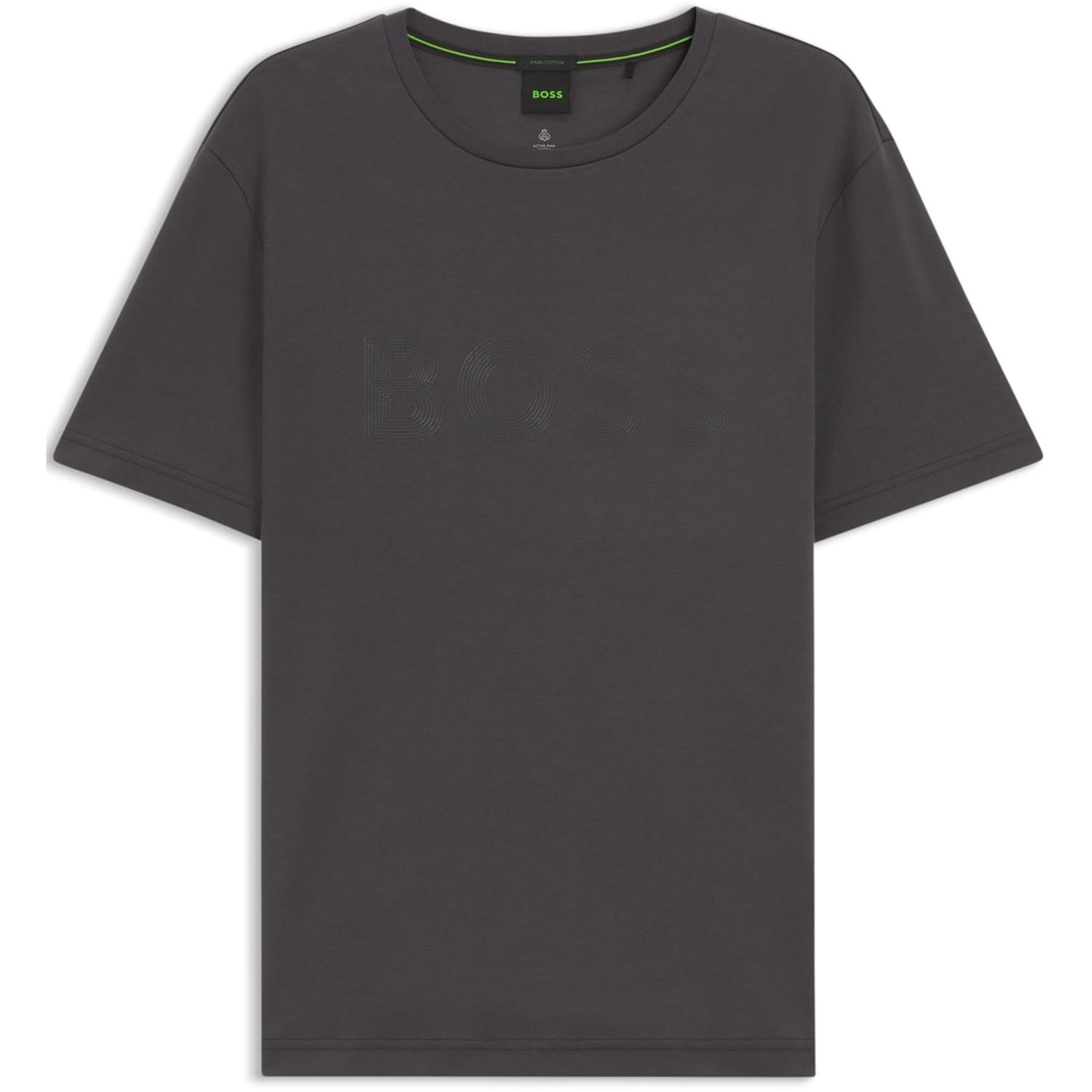 This Boss top from the casual collection features a regular fit and a solid pattern. It is designed with a crew neck and short sleeves, offering a comfortable and stylish look. The top is embellished with a logo, adding a touch of brand identity to the piece. -