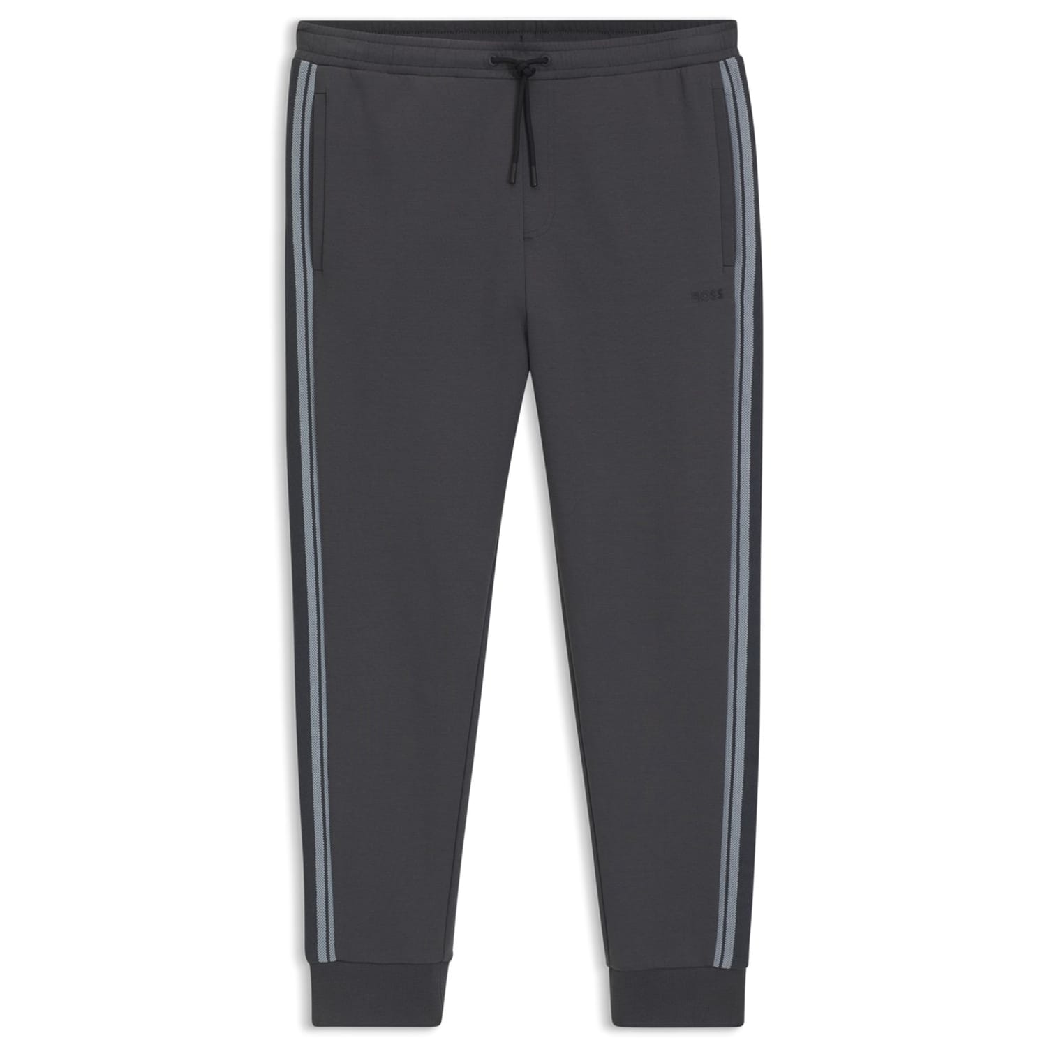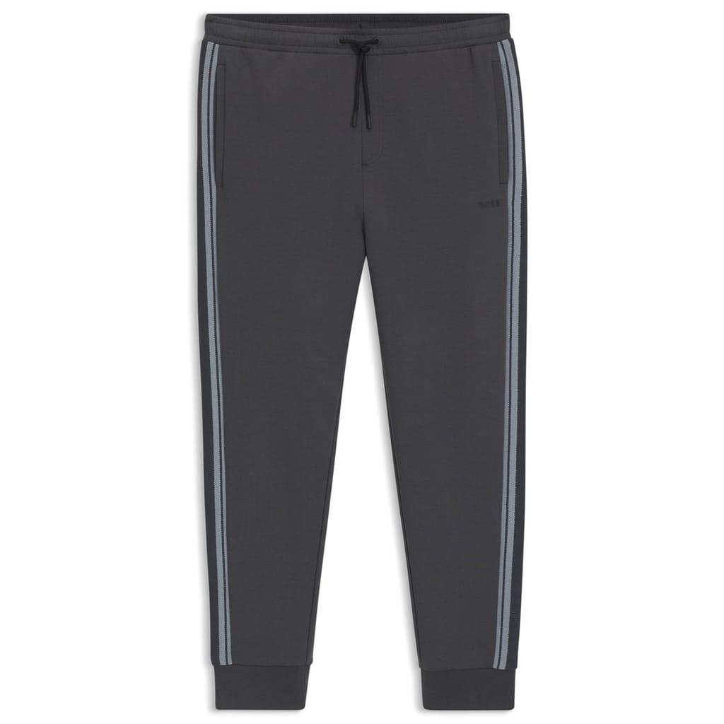 Elevate off-duty dressing with the Boss Logo Jogging Bottoms, a refined take on athletic essentials. The ribbed cuffs create a snug and secure fit, while the trims down the legs offer a sleek and clean look. Perfect for a casual coffee meeting or a long-haul flight, these joggers balance lounge-level comfort with city-ready polish.