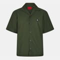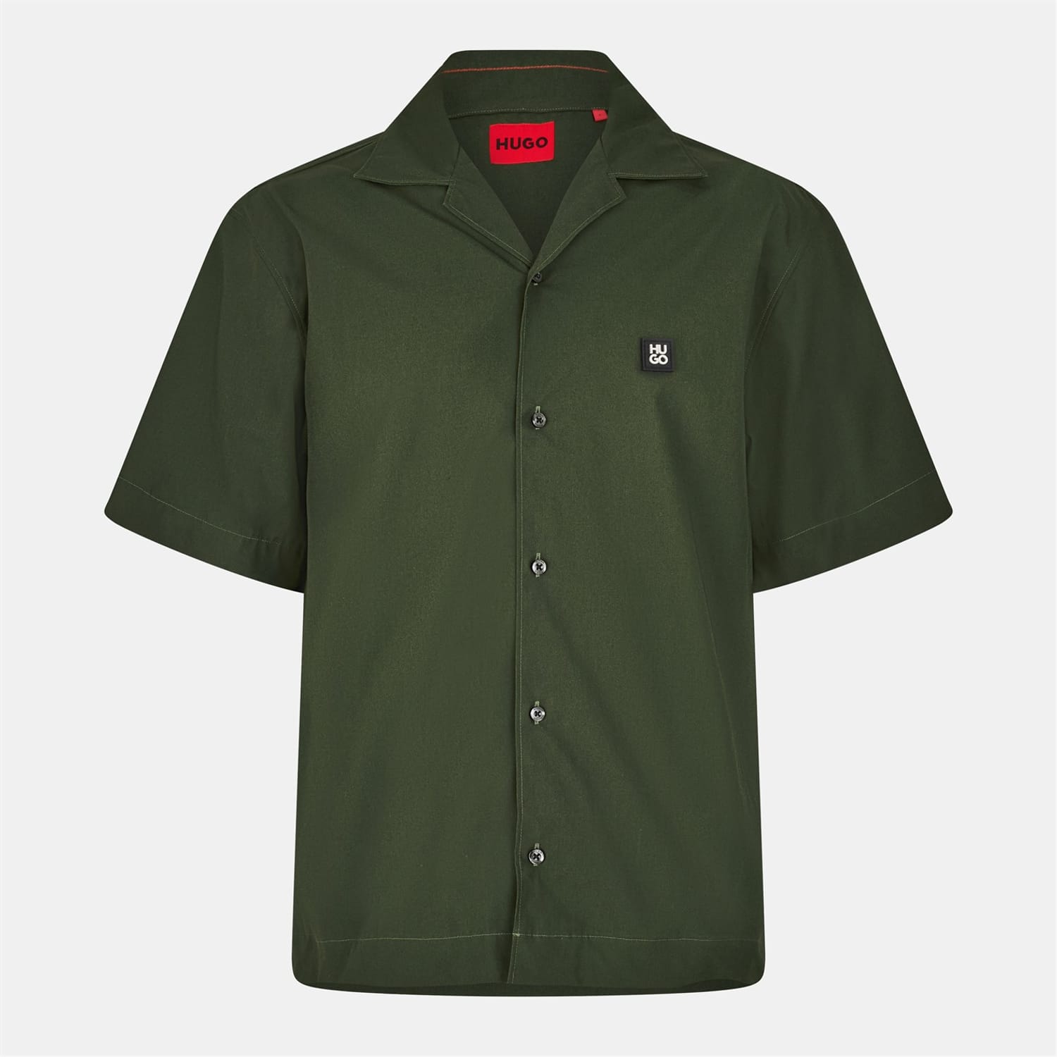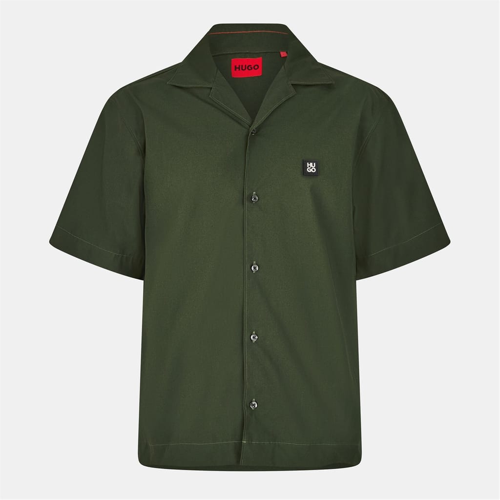 This Hugo overshirt features a solid pattern and a regular fit, offering a versatile addition to your wardrobe. The short-sleeve design is complemented by a shirt collar and a straight hem, providing a classic silhouette. A button closure adds a touch of practicality, while the logo embellishment subtly showcases the brand's identity. -