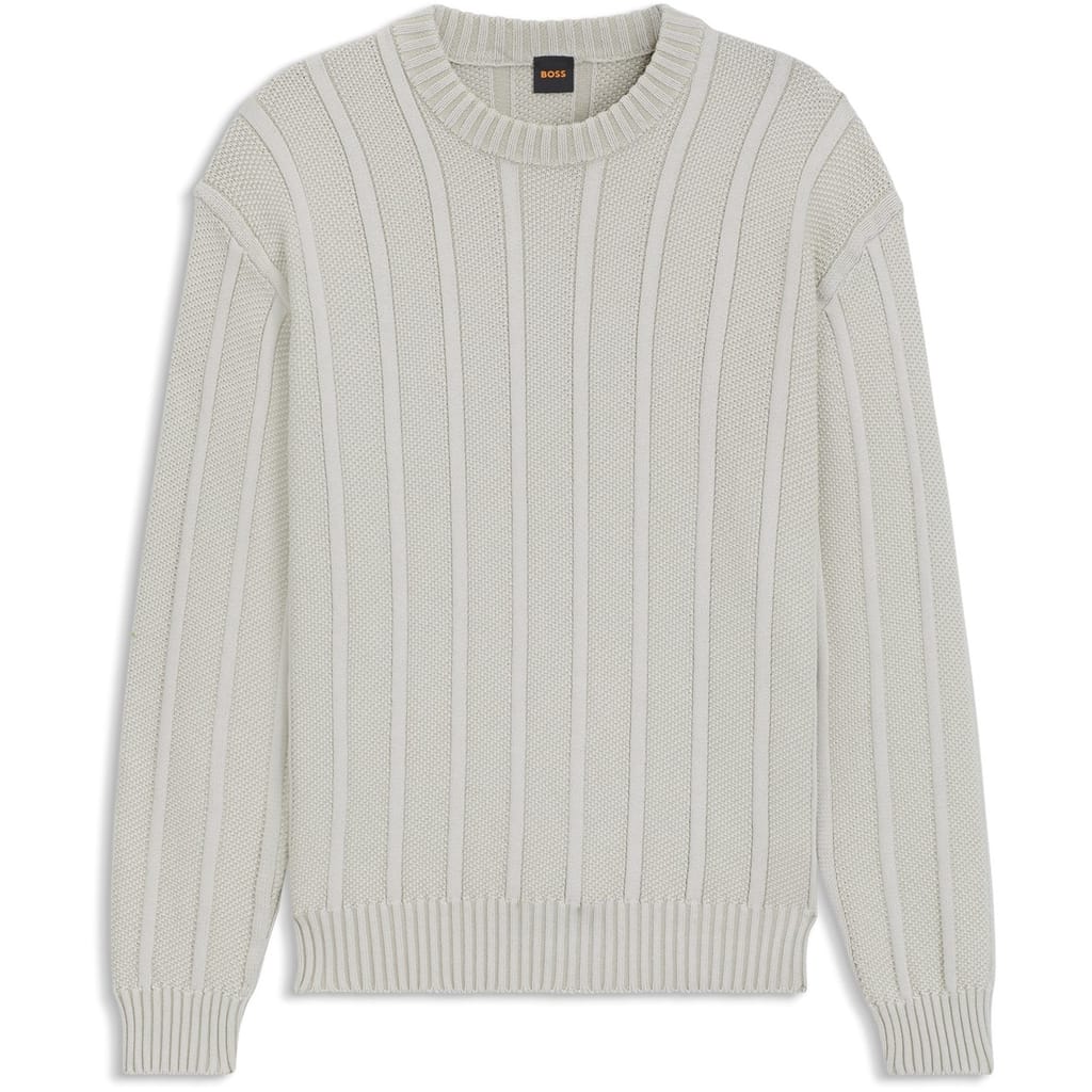 The Kaktus Knitted Jumper from BOSS Menswear is crafted from breathable cotton, blending rib and rice corn textures for a contemporary look. Its laid-back fit and French shoulders offer relaxed yet refined style. Perfect for casual office days, weekend coffee runs, or cosy evenings by the fire, this jumper effortlessly balances comfort and sophistication.