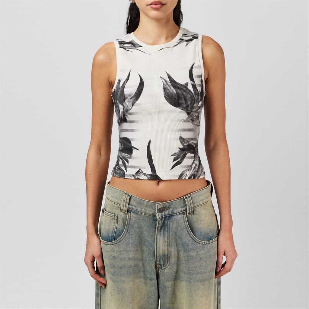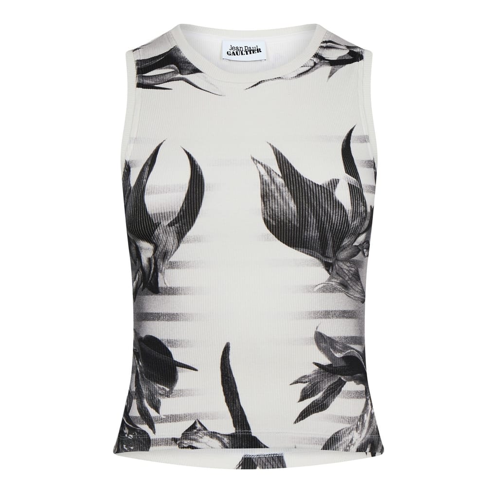 Exude an eye-caching appeal with this Floral-Print Tank Top from Jean Paul Gaultier. Captivate crowds with this intricate, tank top, whilst the soft and breathable feel enhances your comfort. Distinctive and striking, this short sleeved top infuses your attire with a seasonal appeal.