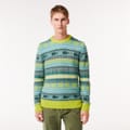 This Lacoste sweater features a classic fair isle pattern, perfect for a stylish look. The long sleeves and ribbed cuffs offer a comfortable fit, while the ribbed collar enhances the overall design. A distinctive crocodile logo embellishment adds a touch of brand identity, making this regular fit sweater a timeless wardrobe addition. -